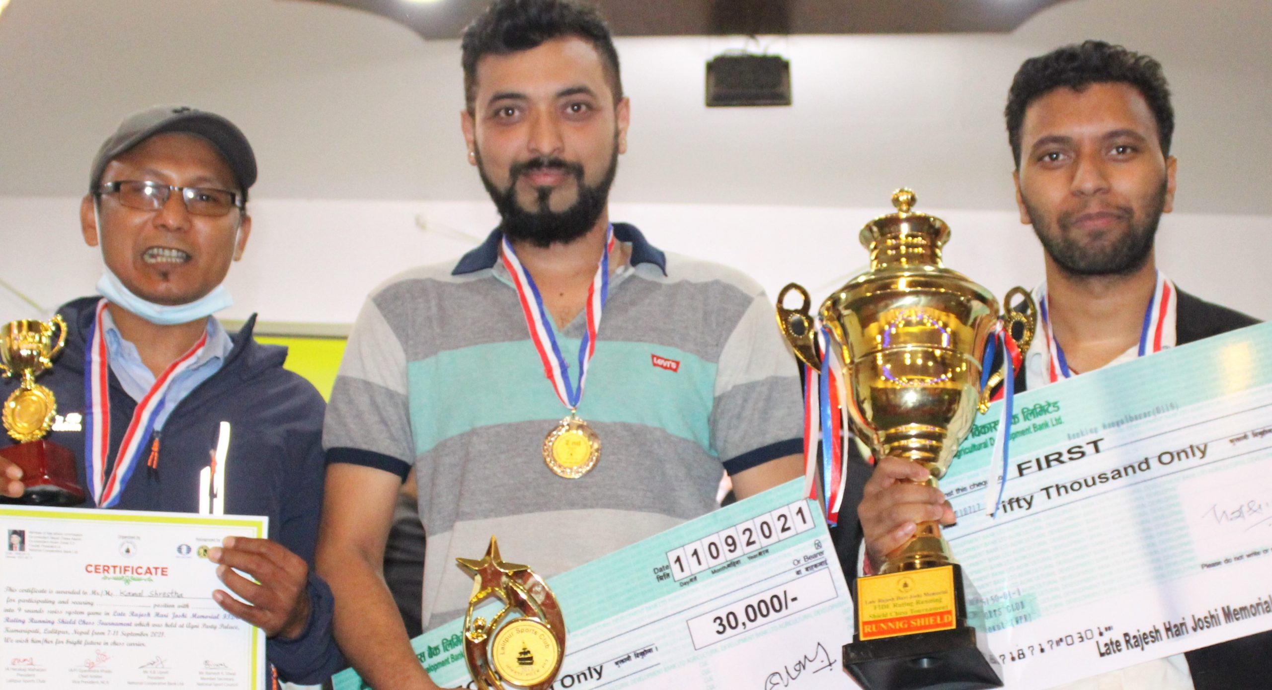 काठमाडौं (हाम्रो खेलकुद) – फिडेमास्टर रुपेश जैसवालले नेपाल बुद्धिचाल संघका पूर्वअध्यक्ष एवं सहकारी अभियन्ता स्व.राजेशहरि जोशीस्मृति फिडे रेटिङ्ग बुद्धिचाल प्रतियोगिताको उपाधि जितेका छन् । सजिलोसिभी डटकमका रुपेशले ९ खेलमा २ बराबरी र ७ जितका साथ ८ अंक प्राप्त गर्दै ५० हजार रुपैयाँसहित रनिङ्ख शिल्ड, ट्रफी प्राप्त गरे ।त्यसैगरी समान साढे ७ अंक प्राप्त गरेपनि प्रोग्रेसिव […]
