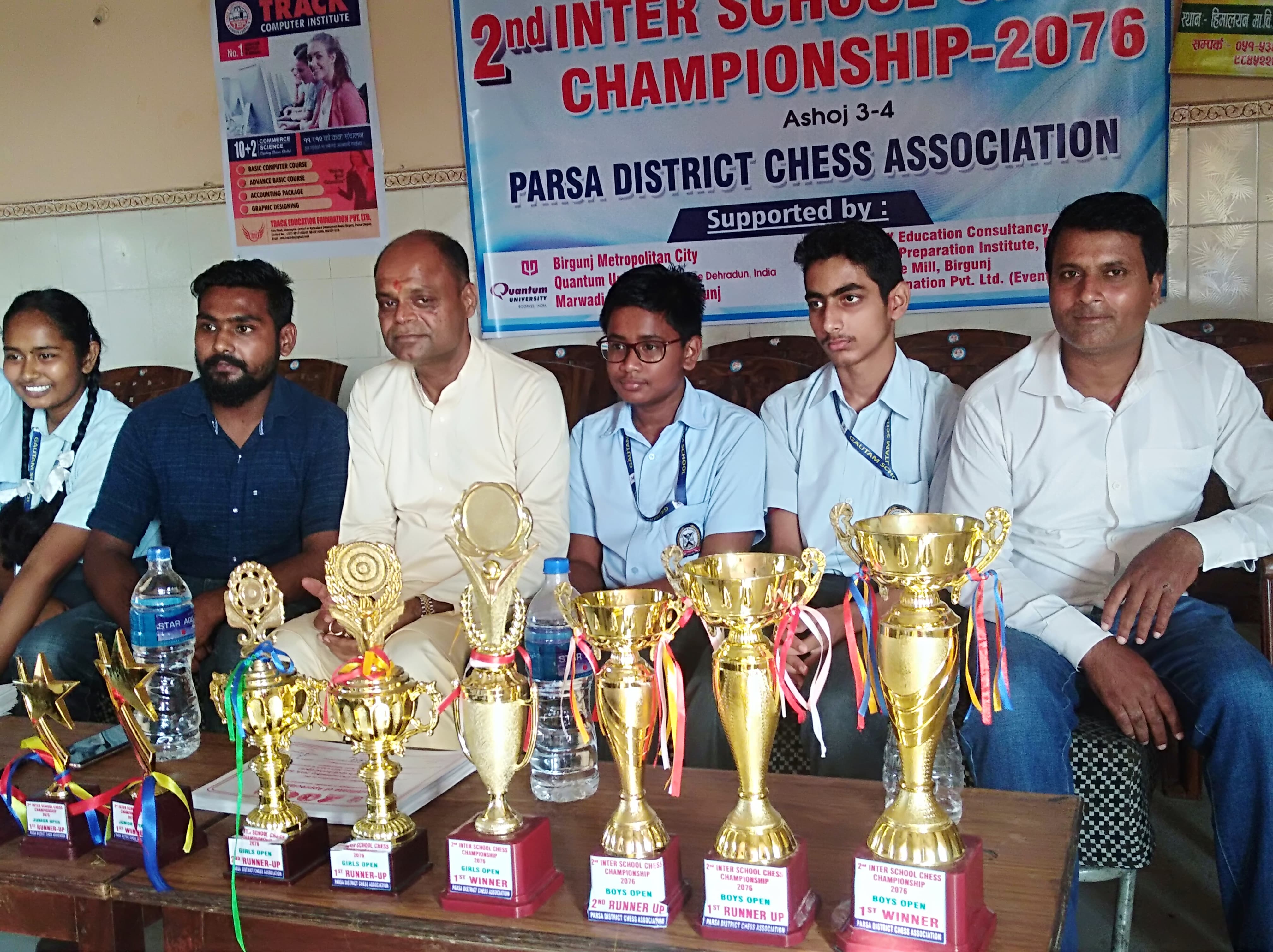 सुनील गाउँले सिमरा – दोस्रो अन्तर विद्यालय बुद्धिचाल प्रतियोगिताअन्तर्गत छात्रातर्फ मुनलाइट एकेडेमीका दिव्यानी सर्राफ विजयी भएकी छिन् । मस्कट एकेडेमीकी प्रतिक्षा राउत दोस्रो र सोही एकेडेमीका साक्षी साह तेस्रो भइन् । बुद्धिचाल संघ पर्साले वीरगञ्जमा आयोजना गरेको बुद्धिचाल अन्तर्गत छात्र तर्फ होली एन्जल स्कुलका मुस्कान चौधरी च्याम्पियन बने । गौतम स्कुलका प्रिन्सराज सुवेदी दोश्रो तथा […]