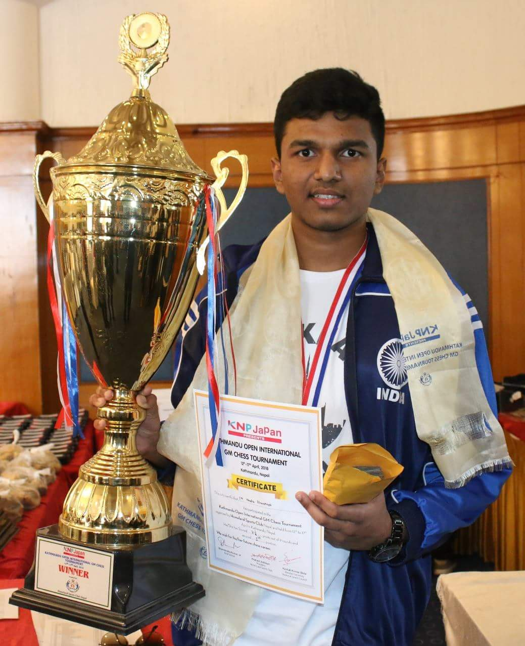काठमाडौं (हाम्रो खेलकुद)– भारतीय इन्टरनेशनल मास्टर हर्ष भाराथाकोटी (२४२४) रेटेडले काठमाडौं ओपन अन्तर्राष्ट्रिय जीएम बुद्धिचाल प्रतियोगिताको उपाधि जितेका छन् । हर्षले अन्तिम तथा नवौं चरणको खेलमा अजरबैजानका २५०४ रेटेड ग्राण्ड मास्टर अजर मिर्जोभसँग बराबरी खेलेसँगै ७.५ अंकका साथ उपाधि जितेका हुन् । हर्षले ६ खेलमा जित निकालेका थिए भने ३ खेलमा बराबरी खेलेका थिए । […]