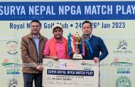 काठमाडौं (हाम्रो खेलकुद)- राष्ट्रिय टोलीका सदस्य तथा एमेच्योर गल्फर राहुल विश्वकर्मा पहिलो पटक सूर्य नेपाल प्रिमियर गल्फ च्याम्पियनसिपको उपाधि जितेका छन्। समग्रमा २१ अन्डर २ सय ६७ को स्कोरमा नेपाल नम्बर एक प्रोफेसनल गल्फर भुवन नगरकोटीलाई २ स्ट्रोकले माथ दिंदै उपाधिको हकदार बनेका हुन्। आज उनले ५-अन्डर ६७ को स्कोर गरे। गोकर्ण गल्फ क्लबमा आज […]