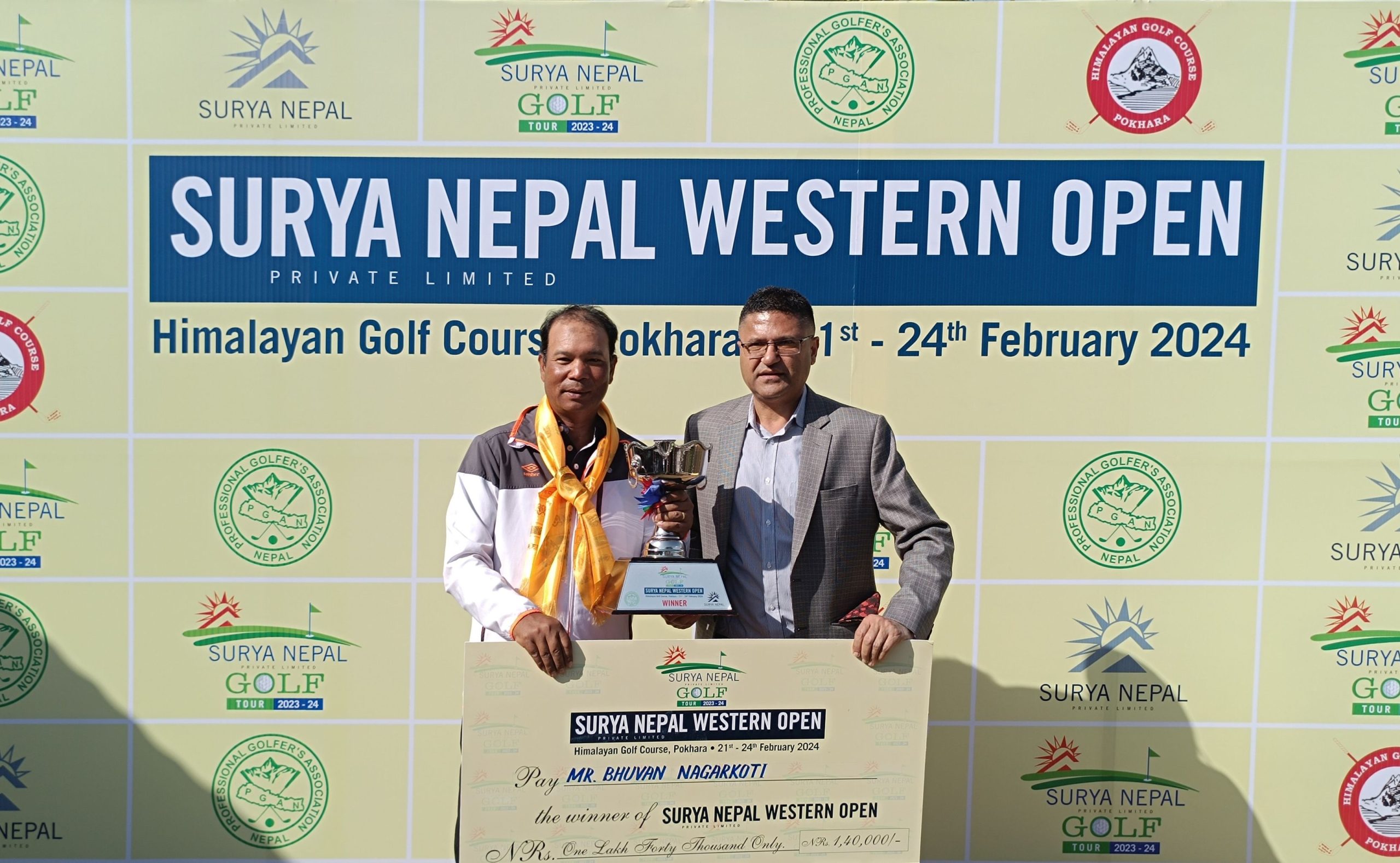 पोखरा (हाम्रो खेलकुद) – पूर्व नम्बर एक प्रो गल्फर भुवन नगरकोटी कीर्तिमानी स्कोर सहित सूर्य नेपाल गल्फ टुर २०२३–२४ अन्तर्गतको चौंथो प्रतियोगिता, सूर्य नेपाल वेस्टर्न ओपनको उपाधि जितेका छन् । भुवनले ५४ होलको प्रतियोगिता १०–अन्डर १ सय ९७ को स्कोरमा उपाधि जित्दा हिमालयन गल्फ कोर्समा बनेको यो अहिलेसम्मकै उत्कृष्ट स्कोर हो । भुवनले सन् २०१७ […]