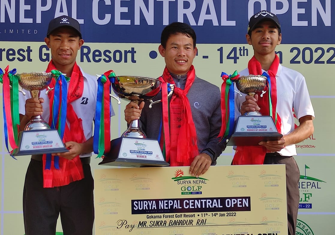 काठमाडौं (हाम्रो खेलकुद) – प्रो शुक्रबहादुर राईले सुर्य नेपाल गल्फ टुर २०२१-२२ मा लगातार दोस्रो उपाधि जितेका छन् । धरान गल्फ क्लबका प्रो शुक्रले शुक्रबार सुर्य नेपाल सेन्ट्रल ओपनको उपाधि जित्दै १ लाख ३० हजार रुपैयाँ हात पारे । गोकर्ण गल्फ क्लबमा सम्पन्न सिजनको तेस्रो प्रतियोगिता शुक्रले शुक्रबार अन्तिम दिन १ ओभर ७३ स्कोरसहित कुल […]