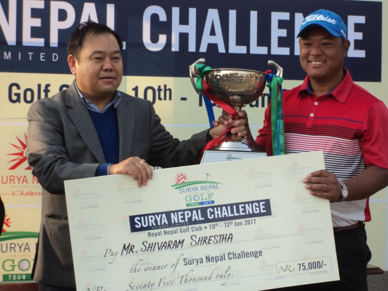 काठमाडौं (हाम्रो खेलकुद)– नेपालका नम्बर एक व्यवसायिक गल्फर शिवराम श्रेष्ठले १० स्ट्रोकको अग्रताका साथ सूर्य नेपाल च्यालेन्ज गल्फ उपाधि जितेका छन् । रोयल नेपाल गल्फ क्लब (आरएनजिसी) को पार ६८ मा अन्तिम दिन शुक्रबार शिवरामले ४ अन्डर ६४ को प्रदर्शन गरे । समग्रमा ८ अन्डर २ सय ६४ को प्रदर्शन गर्दै सूर्य नेपाल गल्फ टुर […]