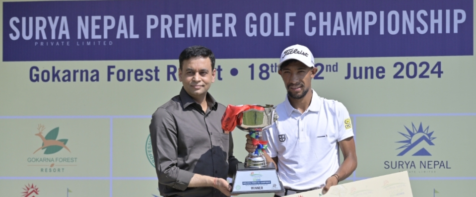 काठमाडौ (हाम्रो खेलकुद)- सुवास तामाङले सूर्य नेपाल प्रिमियर गल्फ च्याम्पियनसिपको उपाधि रक्षा गरेका छन् । भुवन नगरकोटी र निरज तामाङलाई शुक्रबार २ स्ट्रोकले हराउँदै सूर्य नेपाल गल्फ टुर २०२३-२४ को अन्तिम प्रतियोगिताका रुपमा रहेको सूर्य नेपाल प्रिमियर गल्फ च्याम्पियनसिपको उपाधि जितेका हुन्। आज ४-अन्डर ६८ को कार्ड तयार गर्दै सुवासले समग्रमा १६-अन्डर २ सय ७२ […]