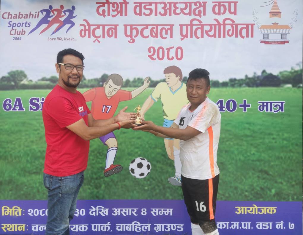 काठमाडौं (हाम्रो खेलकुद) – थापागाउँले दोश्रो वडा अध्यक्ष कप भेट्रान फुटबल प्रतियोगितामा बुधबार जित हात पारेको छ । चन्द्रविनायक पार्क, चावहिल मैदानमा थापागाउँले चावहिल भेट्रान ‘ए’ लाई ४–१ गोलले पराजित ग¥यो । थापागाउँका हरिहर थापा, धनवीर चौधरी, शशि गौतम र प्रवेशजंग थापाले १–१ गोल गरे । चावहिलका अजब श्रेष्ठले सान्त्वना गोल गरे । काठमाडौं महानगरपालिका […]
