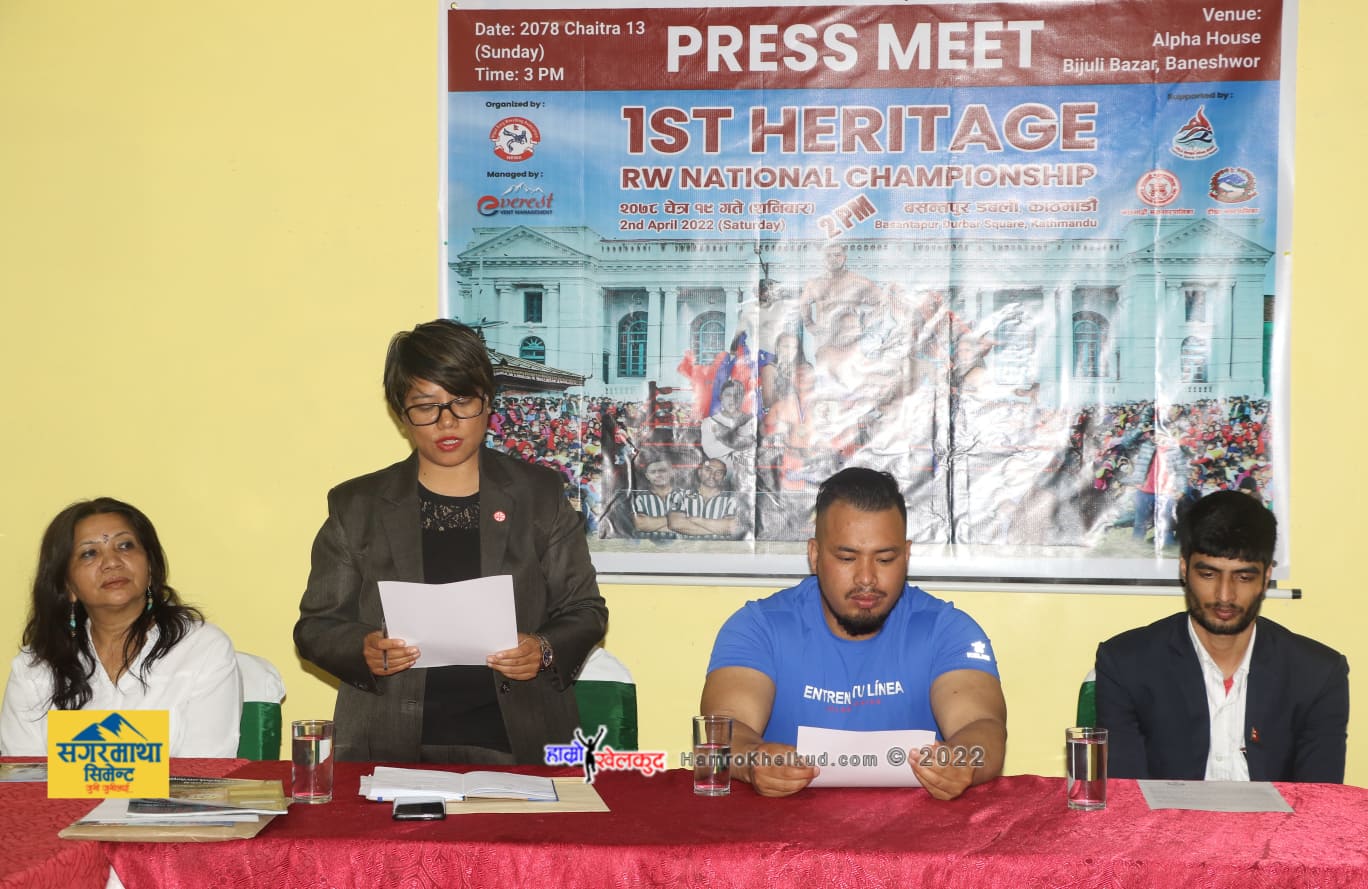 काठमाडौं (हाम्रो खेलकुद) – नेपाल रिङ रेस्लिङ संघको आयोजनामा आउदो शनिबार काठमाडौंको बसन्तपुर डबलीमा प्रथम हेरिटेज रिङ रेस्लिङ राष्ट्रिय च्याम्पियनसिप आयोजना हुने भएको छ । आयोजक संघले आइतबार राजधानीमा पत्रकार सम्मेलनको आयोजना गर्दै रिङ रेस्लिङ राष्ट्रिय च्याम्पियनसिप चैत १९ गते शनिबार हुने जानकारी गराएको हो । बसन्तपुरमा हुने प्रतियोगिताको लागि काठमाडौं महानगरपालिका र टोखा नगरपालिकाको […]