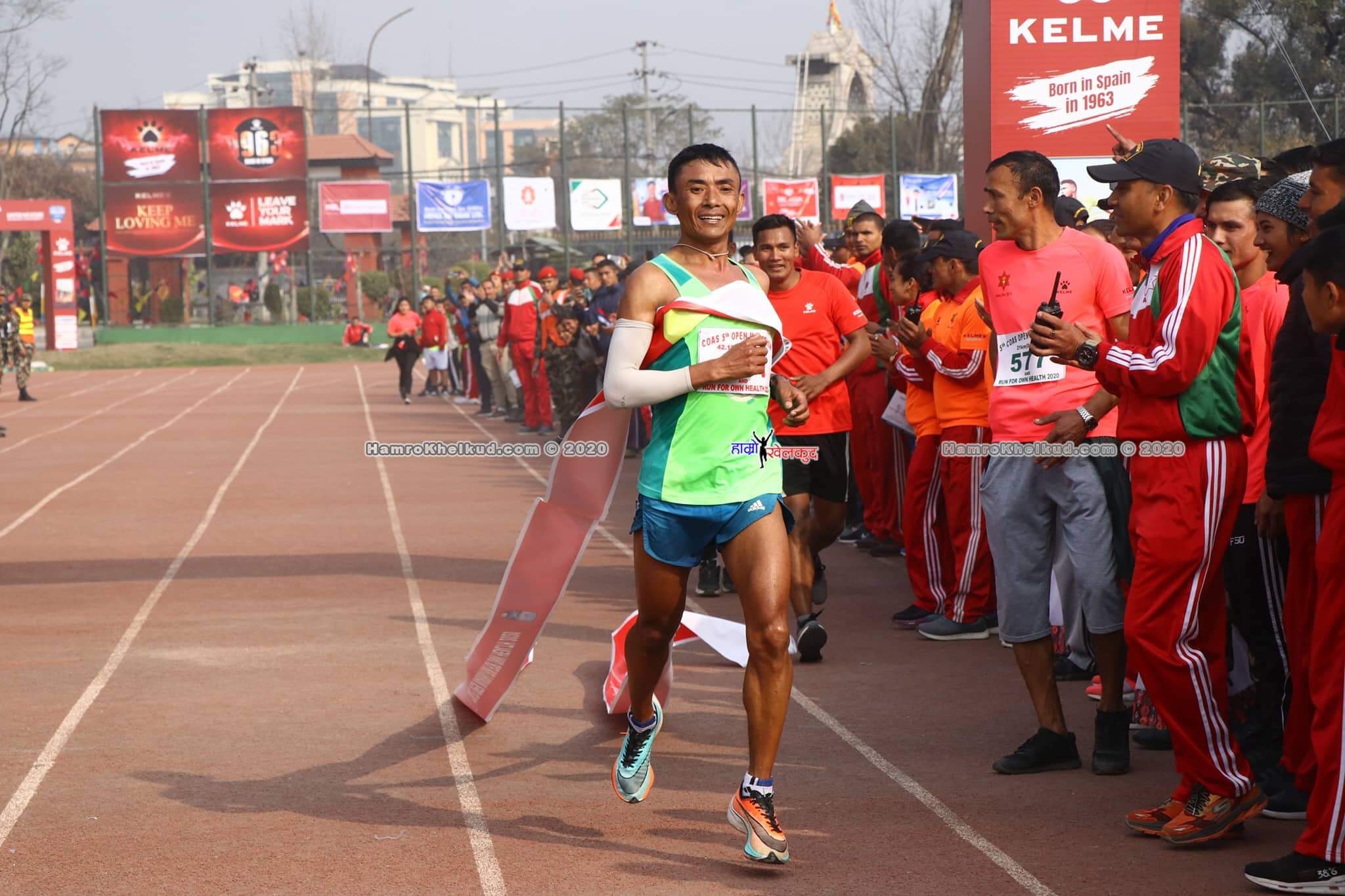 काठमाडौं (हाम्रो खेलकुद) – आर्मीका धावक होमलाल श्रेष्ठले पाँचौ प्रधानसेनापति खुल्ला म्याराथनको उपाधि जितेका छन् । शनिवार भएको म्याराथनमा होमलालले निर्धारित ४२.१९५ किलोमिटरको दुरी २ घण्टा २२ मिनेट १७ सेकेण्डमा पुरा गर्दै उपाधि जितेका हुन् । उनले डिफेन्डिङ च्याम्पियन आर्मीकै कृष्ण बस्नेतलाई १ मिनेट ३२ सेकेण्डले पछि पार्दै पहिलो पटक उपाधि जितेका हुन् । ब्यक्तिगत […]