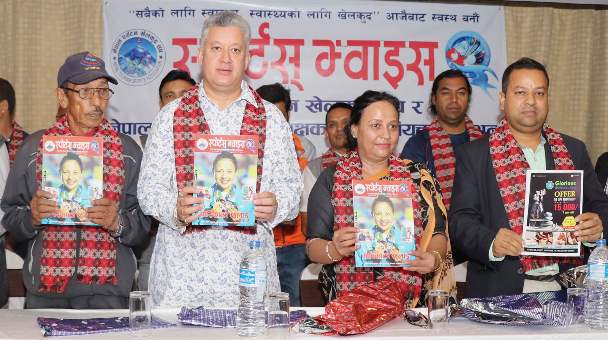 काठमाडौं (हाम्रो खेलकुद)- खेलकुद म्यागजिन ‘स्पोर्ट्स भ्वाइस’ को मंगलबार विमोचन भएको छ । नेपाल पर्यटन खेलकुद संघ र नेपाल खेलाडी तथा प्रशिक्षक संघले संयुक्त रुपमा प्रकाशन गरेको ‘स्पोर्टस् भ्वाइस’ को पहिलो अंक विमोचन गरिएको छ । स्पोर्ट्स भ्वाइसको पहिलो अंक संघिय संसद दुर्गा पौडेल र नेपाल खेलाडी तथा प्रशिक्षक संघका अध्यक्ष महेश महर्जन र पूर्व […]