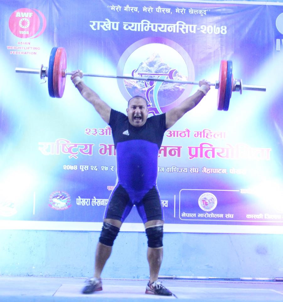 काठमाडौं (हाम्रो खेलकुद) – नेपाली सेनाका दिनेश श्रेष्ठले राखेप च्याम्पियनसिप अन्तर्गतको २३ औं पुरुष तथा आठौं महिला राष्ट्रिय भारोत्तोलन च्याम्पियनसिपमा १९ वर्षे कीर्तिमानलाई भंग गरेका छन् । सेनाका दिनेशले १०५ केजी तौल समूहमा स्नाचतर्फ १२१ केजी भार वहन गर्दै १९ बर्षअघि मदन शिवभक्तिले आठौं साफ गेम्समा राखेको १२० केजीको कीर्तिमा भंग गरेका हुन् । क्लिन […]
