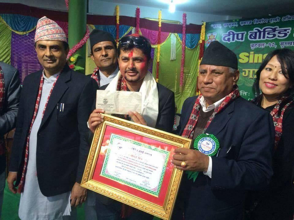 बुटवल (हाम्रो खेलकुद) – रुपन्देहीका युवा पत्रकार दिपक न्यौपाने उत्कृष्ट खेलकुद पत्रकारिता पुरस्कारबाट सम्मानित भएका छन् । दिप माविले आफ्नो ३५ औं बार्षिक उत्सवका अवसरमा न्यौपानेले उक्त पुरस्कारबाट सम्मान गरेको हो । रुपन्देहीका प्रमुख जिल्ला शिक्षा अधिकारी टेकबहादुर थापा, विद्यालयका प्राचार्य टिकाराम न्यौपाने र राष्ट्रिय परिक्षा बोर्ड बुटवलका कार्यालय प्रमुख सुरेन्द्रराज पराजुली लगायतले उनलाई संयुक्त […]