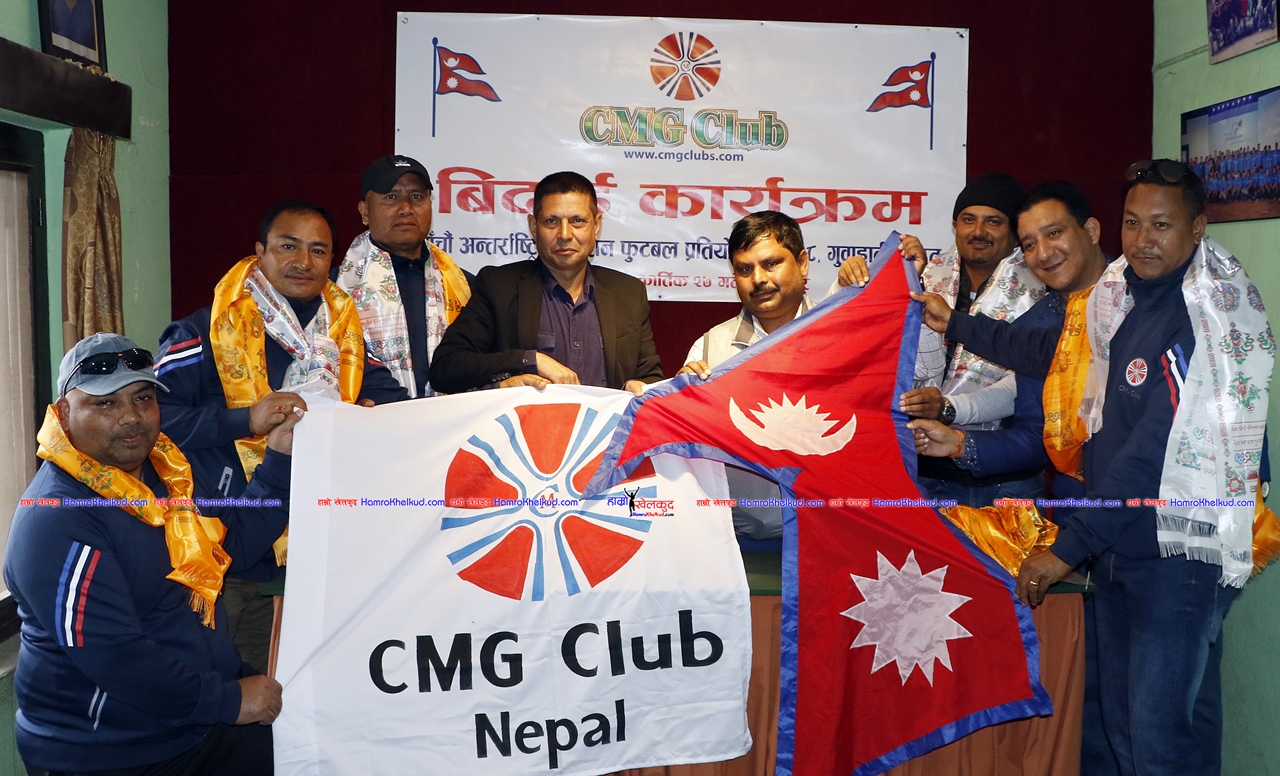 काठमाडौं (हाम्रो खेलकुद) – भारतको गुवाहटीमा हुने अन्तर्राष्ट्रिय भेट्रान फुटबल प्रतियोगिताको लागि नेपालको सिएमजी भेट्रान क्लबको टोली बुधबार त्यसतर्फ प्रस्थान गर्ने भएको छ । सिएमजी क्लब नेपालले मंगलबार राजधानीमा पत्रकार सम्मेलनको आयोजना गर्दै टिमलाई बिदाई गरे । २० सदस्यीय नेपाली टोलीलाई सिएमजी क्लबका प्रवन्ध निर्देशक नरेन्द्र साह र पूर्व राष्ट्रिय खेलाडी तथा ‘ए’ डिभिजन लिगका […]