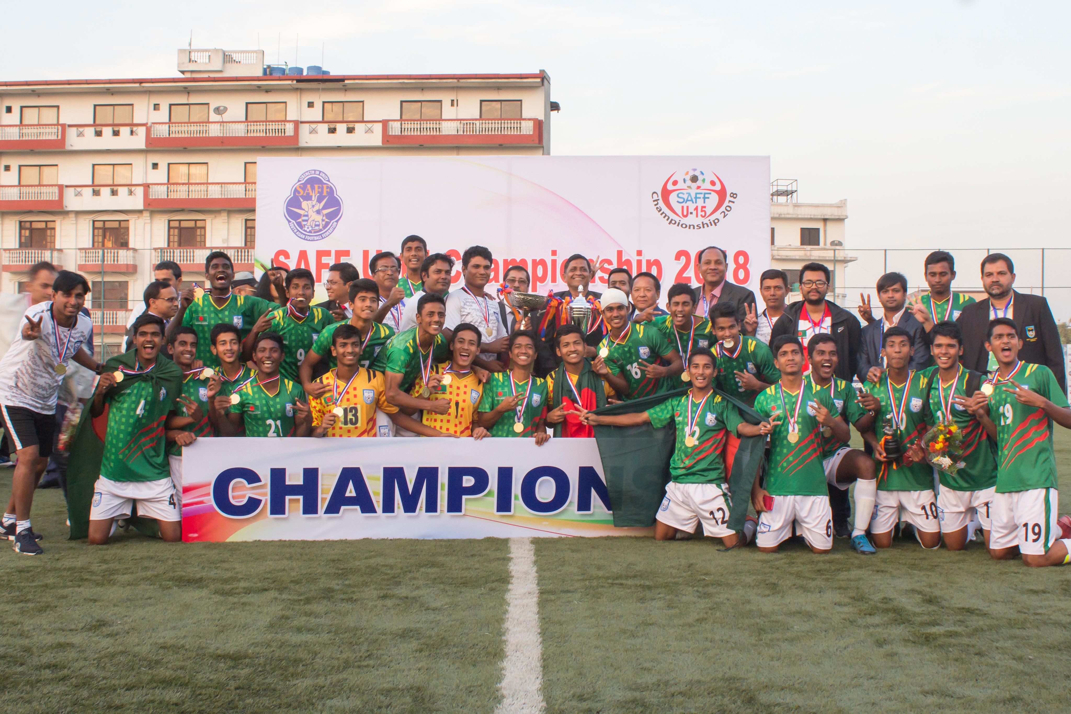 काठमाडौं (हाम्रो खेलकुद)– बंगलादेशले साफ यू १५ च्याम्प्यिनसिप फुटबलको उपाधि जितेको छ । सातदोबाटोस्थित एन्फा कम्प्लेक्समा शनिबार भएको फाइनलमा पाकिस्तानलाई टाइब्रेकरमा ३–२ ले हराउँदै बंगलादेशले उपाधि जितेको थियो । निर्धारित समयमा १–१ को बराबरीमा टुंगिएपछि टाइब्रेकरमा बंगलादेशले बाजी मारेको थियो । बंगलादेशले सेमिफाइनलमा पनि टाइब्रेकरमा जितेको थियो ।पाकिस्तानका कप्तान हासिब अहमद खानको आत्मघाती गोलमा २५ […]