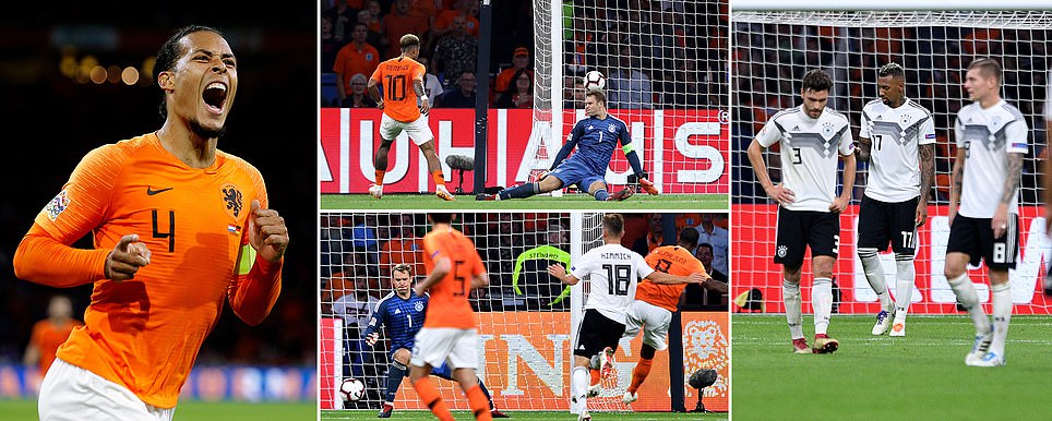आम्सटर्डम (एजेन्सी) – २०१४ को विश्वविजेता जर्मनी नेदरल्यान्डसँग स्तब्ध बनेको छ । युइएफए नेसन्स लिग ‘ए’ अन्तरगतको समूह १ को खेलमा जर्मनी नेदरल्यान्डसँग ३–० ले स्तब्ध बनेको हो । जर्मनीलाई स्तब्ध बनाउन भर्जिल भान डिजिक, मेम्फिस डिपे र जर्जिन्हो विज्नल्डमले गोल गरे । नेदरल्यान्डको जोहान क्रुफ एरिनामा शनिबार राति भएको खेलमा जर्मनी खेलको ३०औं मिनेटमा […]