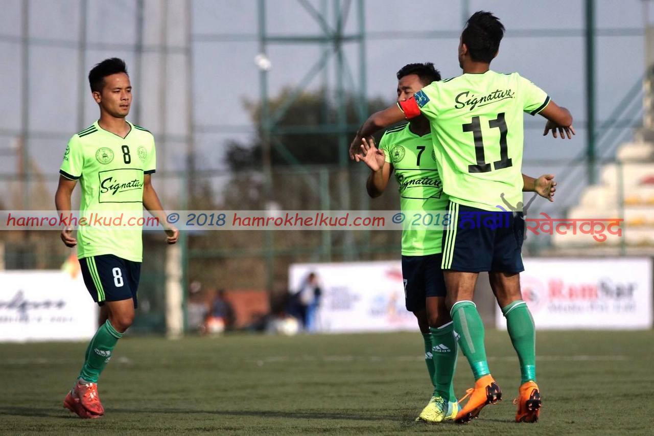 काठमाडौं (हाम्रो खेलकुद) – सहिद स्मारक ए डिभिजन लिग अन्तर्गत अहिले जारी खेलमा ब्रिगेड ब्वाइज क्लबले सिग्नेचर मनाङ मर्स्याङदी क्लबविरुद्ध १-० को अग्रता लिएको छ । ब्रिगेड ब्वाइजका लागि रजत तिवारीले खेलको २९ औं मिनेटमा सुन्दर गोल गर्दै सुरुवाती अग्रता दिलाए । रजतले पेनाल्टी क्षेत्रबाहिरबाट गरेको शक्तिशाली प्रहार दर्शनीय गोलमा परिणत भएको थियो । खेलमा […]