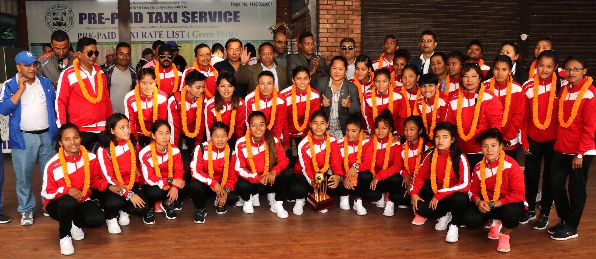काठमाडौं (हाम्रो खेलकुद) – महिला यू १८ साफ च्याम्पियनसिपमा दोस्रो बनेको नेपाली टोली बुधबार स्वदेश आइपुगेको छ । अखिल नेपाल फुटबल संघ (एन्फा) पदाधिकारीले त्रिभुवन विमानस्थलमा युवा टोलीको स्वागत गरेको थियो । भुटानमा भएको साफ च्याम्पियनसिपको आइतबार भएको फाइनलमा नेपाल बंगलादेशसँग १–० ले पराजित भएको थियो । सेमिफाइनलमा भारतलाई हराउँदै नेपाल फाइनलमा पुगेको थियो । […]