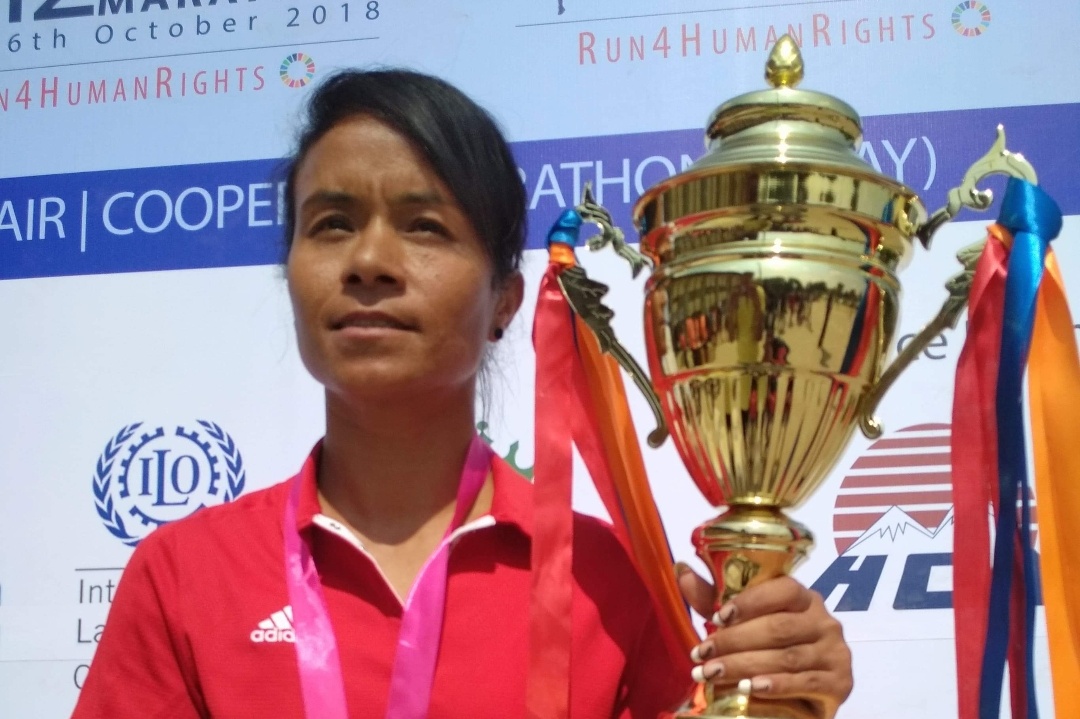 काठमाडौं (हाम्रो खेलकुद) – विभागीय नेपाल एपिएफ क्लबकी कान्छी माया कोजुले म्याराथनमा नयाँ राष्ट्रिय कीर्तिमान बनाएकी छिन् । १२औं संस्करणको काठमाडौं म्याराथन अन्तरगत शनिबार बिहान भएको म्याराथनमा कान्छीले निर्धारित दुरी २ घन्टा ५० मिनेट ४१ सेकेन्डमा पुरा गर्दै दुई वर्ष अघि आफ्नै नाममा रहेको कीर्तिमान भंग गरेको हो । उनले २०७३ को काठमाडौं म्याराथनमा २ […]