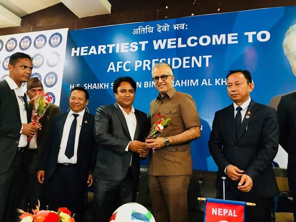 काठमाडौं (हाम्रो खेलकुद)– एसियाली फुटबल महासंघ (एएफसी) का अध्यक्ष सेख सलमान बिन इब्राहिम अल खलिफा सोमबार सातदोबाटोस्थित अखिल नेपाल फुटबल संघ (एन्फा) मुख्यालय पुगेका छन् । तीन दिने नेपालको भ्रमणका लागि उनी आइतबार नेपाल आएका थिए । एएफसी अध्यक्षलाई एन्फा अध्यक्ष कर्मा छिरिङ शेर्पालगायत पदाधिकारीले स्वागत गरेका थिए । सलमानले एन्फा पदाधिकारी एवंम सदस्यहरुसँग छलफल […]