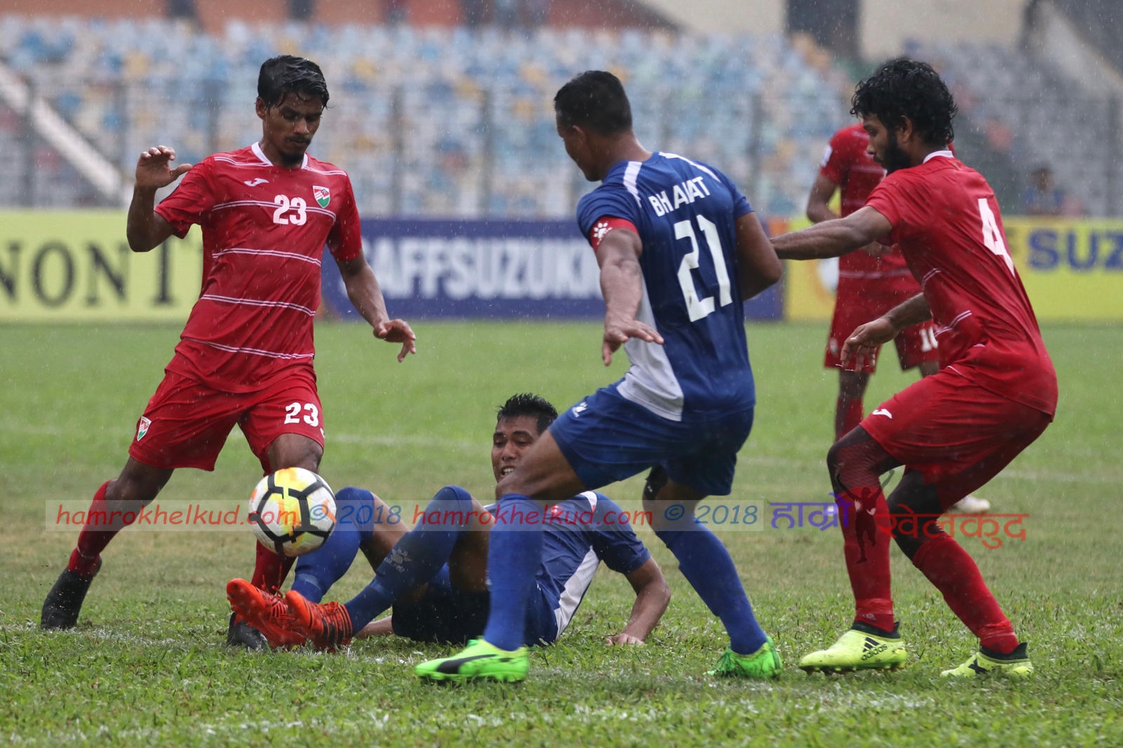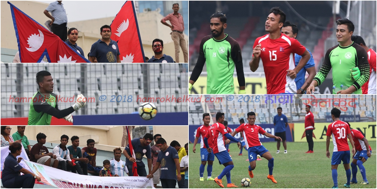 विवेक सुवेदी ढाका – साफ च्याम्पियनसिपअन्तर्गत आज बंगलादेशको ढाकास्थित बंगबंधु रंगशालामा नेपाल र माल्दिभ्स सेमिफाइनल खेलमा भिड्दै छन् । नेपालले पछिल्लो खेलबाट सुरुआती ११ मा कुनै परिवर्तन गरेको छैन । सेमिफाइनल खेलअघि वार्म अप सेसनमा व्यस्त खेलाडीहरु :