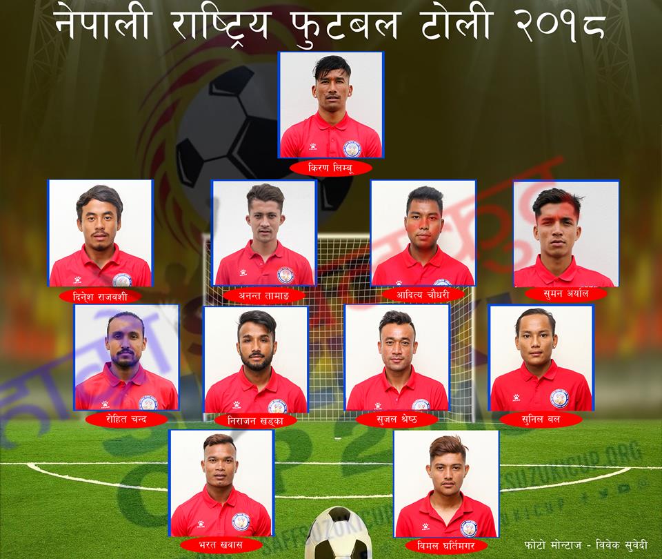 प्रकाश तिमल्सिना ढाका– साफ च्याम्पियनसिपअन्तर्गत माल्दिभ्सविरुद्धको सेमिफाइनल खेलका लागि नेपालको सुरुआती ११ घोषणा भएको छ । शनिबार बंगलादेशविरुद्ध भएको समूह चरणको अन्तिम खेलमा खेलबाट प्रशिक्षक बालगोपाल महर्जनले कुनै परिवर्तन गरेका छैनन् । नेपालको सुरुआती एघारमा किरण चेम्जोङ गोलरक्षक छन् । डिफेन्समा अनन्त तामाङ, आदित्य चौधरी सहित सुमन आर्याल र दीनेश राजवंशीले रहनेछन् । मिडफिल्डको जिम्मेवारी रोहित […]