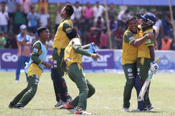 धनगढी (हाम्रोखेलकुद)- टिम चौराहा धनगढी रुस्लान धनगढी प्रिमियर लिग (डिपिएल)–२ काठमाडौं गोल्डेन्सलाई १ विकेटले पराजित गर्दै फाइनलमा स्थान बनाएको हो । तस्विरहरु: विवेक सुवेदी / हाम्रोखेलकुद