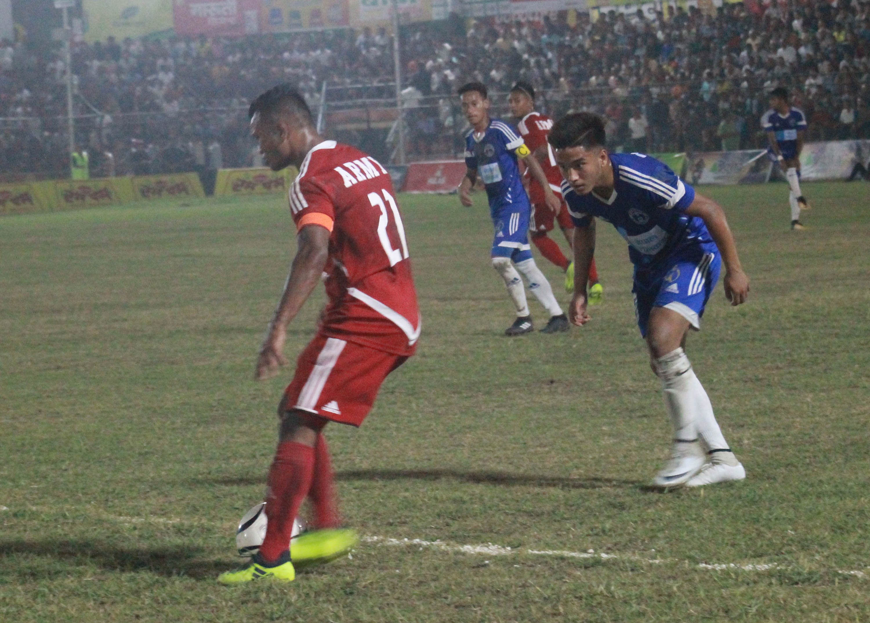 विराटनगर (हाम्र खेलकुद) – सिएमजी क्लब संकटा विराट गोल्डकप फुटबल प्रतियोगिताको सेमिफाइनलमा पुगेको छ । विभागिय टोली नेपाल एपिएफ क्लब लाई १–० ले हराउँदै संकटा अन्तिम चारमा पुगेको हो । विराटनगर स्थित सहिद रंगशालामा मंगलबार भएको दिवा रात्री खेलमा संकटालाई जित दिलाउन विदेशी खेलाडी जीब्रेल नायक बने । ६१ औं मिनेटमा उनले गोल गरेका थिए […]