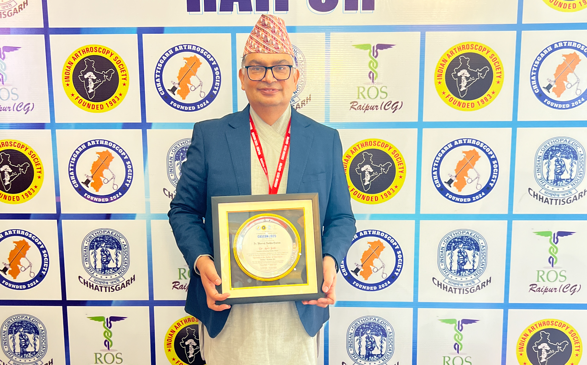 काठमाडौं (हाम्रो खेलकुद) – नेपालका वरिष्ठ आर्थोस्कोपिक सर्जन प्रोफेसर डाक्टर अमित जोशी भारतमा प्रतिष्ठित अवार्डबाट सम्मानित भएका छन् । भारतमा आयोजित प्रथम छत्तीसगढ आर्थोस्कोपी समाज कन्फरेन्सको अवसरमा जोशीलाई डाक्टर मनिष बुधिया ओरेसन अवार्डबाट सम्मानित गरिएको हो । यो अवार्ड प्राप्त गर्ने उनी पहिलो नेपाली हुन् । उनले कन्फरेन्समा ‘नेसेसिटी इज द मदर अफ इनोभेसन’ शीर्षकमा […]