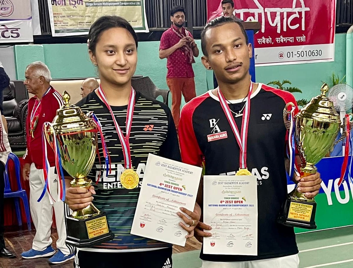 काठमाडौं (हाम्रो खेलकुद) – विश्व जुनियर नम्वर एक तथा रिभाइव लिजरपार्कका प्रिन्स दाहाल र त्रिभुवन आर्मी क्लबकी रशिला महर्जन दोस्रो प्रधानमन्त्री कप खुला र्याङकिङ ब्याडमिन्टन प्रतियोगिताको च्याम्पियन बनेको छ । त्रिपुरेश्वरस्थित राष्ट्रिय खेलकुद परिषद (राखेप) को कभर्डहलमा बिहीबार भएको खेलमा प्रिन्स पुरुष एकलतर्फ तथा रशिला महिला एकलमा च्याम्पियन बनेका हुन् । प्रिन्सले पाँचौं वरीयताका आर्मीका […]