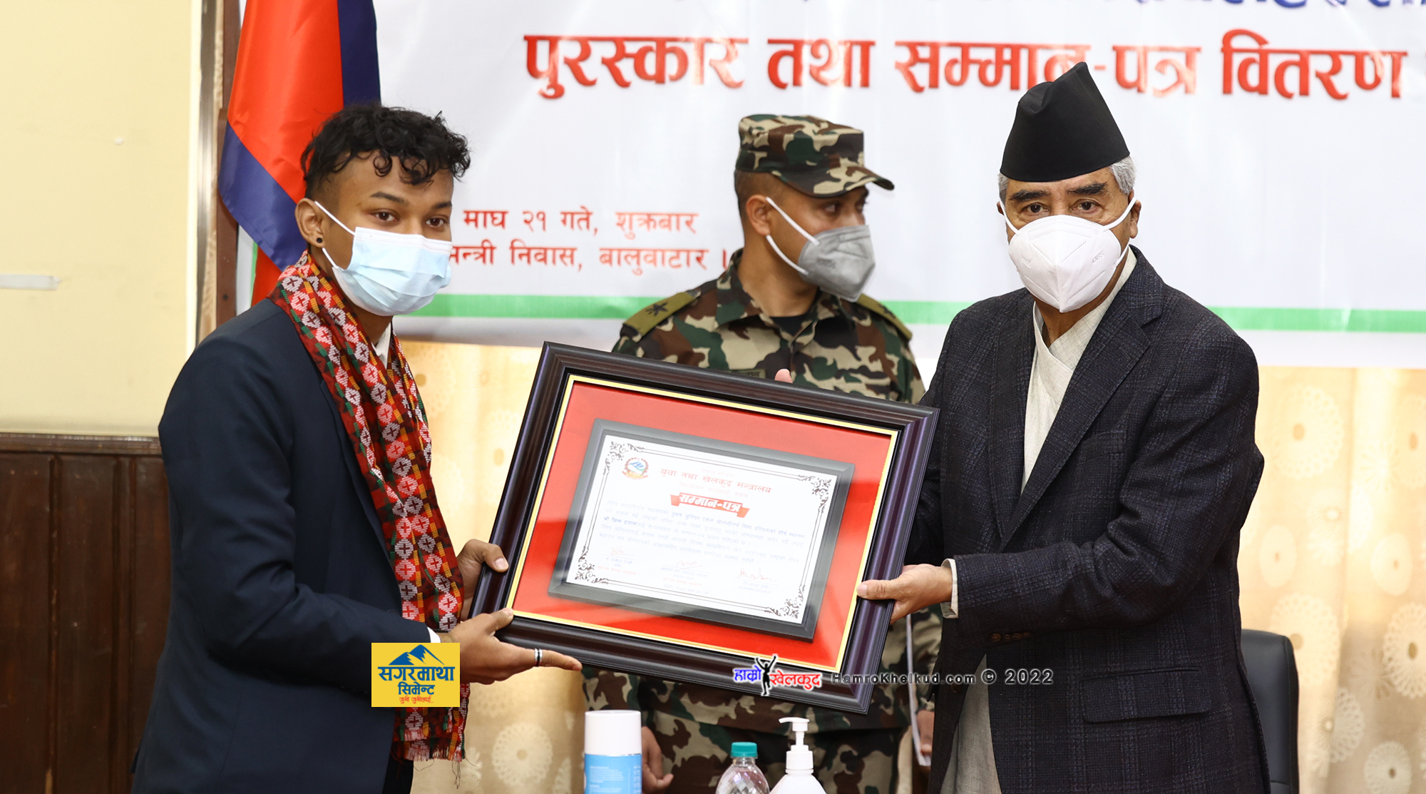 काठमाडौं (हाम्रो खेलकुद)– विश्व ब्याडमिन्टन जुनियर वरियताको शीर्षस्थानमा रहेका युवा स्टार प्रिन्स दाहाल सम्मानित भएका छन् । प्रधानमन्त्री शेरबहादुर देउवाले प्रधानमन्त्री निवास बालुवाटारमा शुक्रबार आयोजित कार्यक्रममा प्रिन्सलाई सम्मान गरेका हुन् । विश्व ब्याडमिन्टन महासंघ (बिडब्लुएफ) ले गत महिना सार्वजनिक गरेको यू १९ को वरियतामा प्रिन्स शीर्षस्थानमा उक्लिएका हुन् । त्यसअघिको वरियतामा प्रिन्स तेस्रो स्थानमा रहेका […]