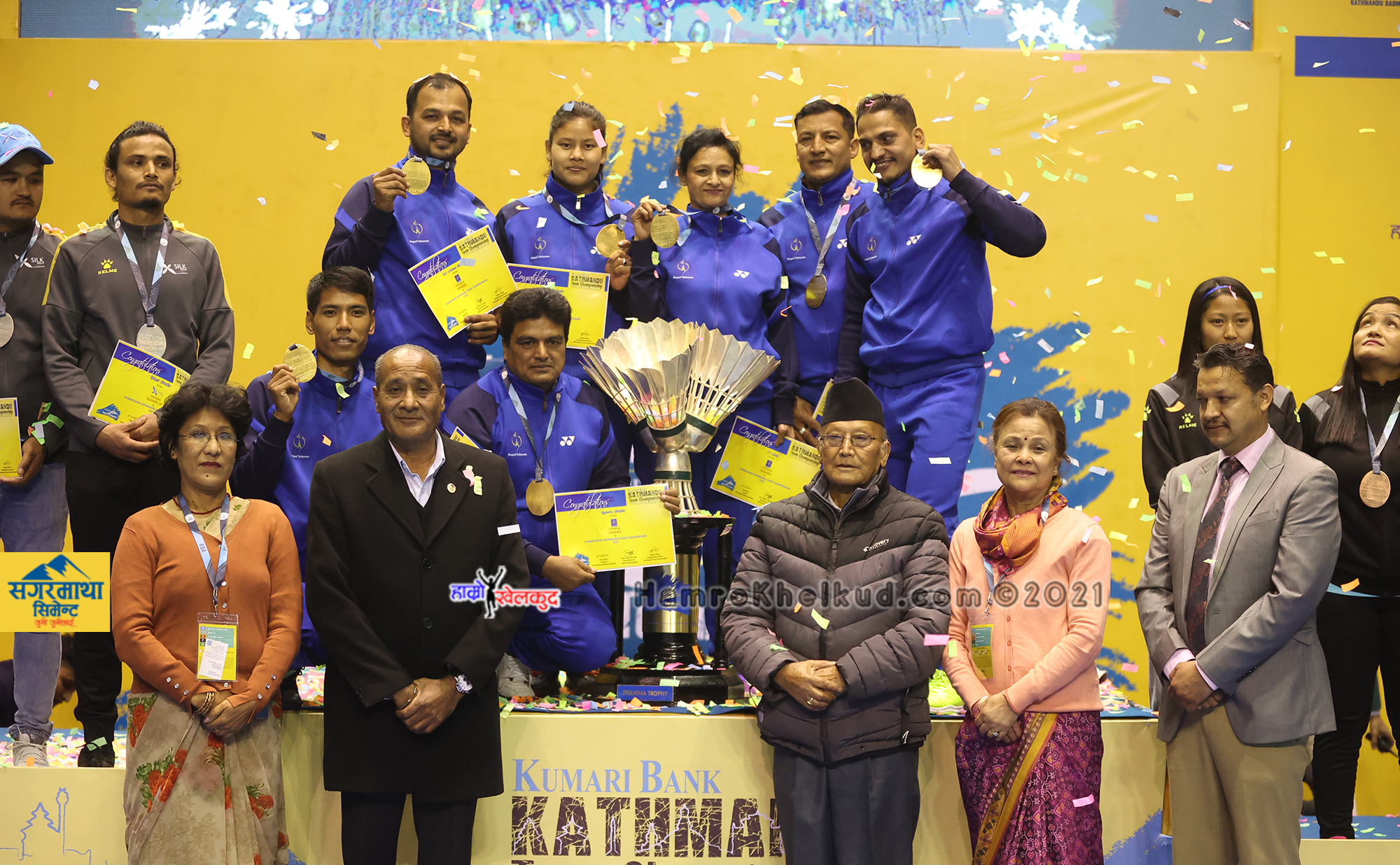 काठमाडौं (हाम्रो खेलकुद) – नेपाल टेलिकमले कुमारी बैंक काठमाडौं टिम च्याम्पियनसिप कर्पोरेट ब्याडमिन्टन (आमन्त्रण) को उपाधि जितेको छ । काठमाडौं ब्याडमिन्टन एकेडेमीको आयोजनामा पहिलोपटक आयोजित च्याम्पियनसिप फाइनलमा सिल्क ग्रुपलाई ३–२ को सेटमा पराजित गर्दै उपाधि जितेको हो । पुरुष एकलमा टेलिकमका रत्नजित तामाङले सिल्क ग्रुपका विकास श्रेष्ठमाथि २१–१८ र २१–१३ को जित निकाल्दै १–० को […]