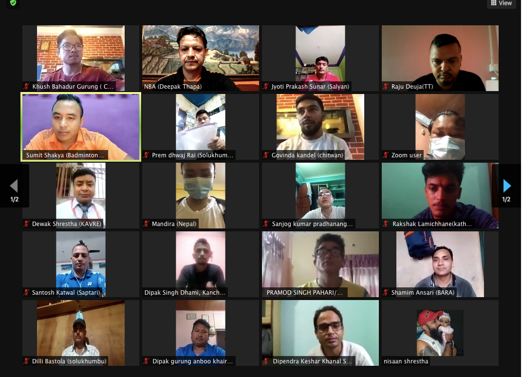 काठमाडौं (हाम्रो खेलकुद) – नेपाल ब्याडमिन्टन संघको आयोजनामा चलिरहेको भर्चुअल ब्याडमिन्टन निर्णायक कोर्ष बुधबार सफलतापूर्वक सम्पन्न भएको छ । १० दिनसम्म सञ्चालन भएको कोर्ष पहिलो चरण श्रावण १७ देखि २१ र दोश्रो चरण २२ देखि २७ गते सम्म सञ्चालन भएको थियो । नेपाल ब्याडमिन्टन संघले सञ्चालन गरेको यो पहिलो आधिकारिक कोर्ष हो । यसअघि पनि […]