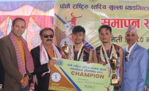 काठमाडौं (हाम्रो खेलकुद) – नेपाल एपिएफ क्लबका प्रिन्स दाहालले चौथो पटक पुष्पलाल स्मृती राष्ट्रिय ¥याङ्किङ्ग ब्याडमिन्टनको उपाधि जितेका छन् । महिला एकलतर्फको उपाधि लतिलपुरकी रसिला महर्जनले जितिन् । १३ औं पुष्पलाल स्मृती राष्ट्रिय ¥याङ्किङ्ग ब्याडमिन्टनको शनिबार भएको शीर्ष ८ तर्फको पुरुष एकलको फाइनलमा ललितपुरका प्रफुल महर्जन माथि २१–१८, २२–२० ले हराउँदै प्रिन्सले उपाधि जितेका हुन् […]