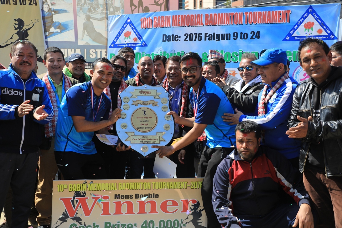 काठमाडौं (हाम्रो खेलकुद) – लतिलपुरका दिपेश शाक्य र ससिन डंगोल १०औं खुल्ला बबिन स्मृती ब्याडमिन्टन प्रतियोगिताको च्याम्पियन बनेका छन् । किङकम क्लब बानेश्वरको आयोजनामा सोमबार भएको फाइनलमा योङस्टार क्लब ललितपुरका शसिन र दिपेशको जोडीले आयोजकका बिकास चन्द्र राई र यम रानाको जोडीलाई २१–१८, ११–२१ र २१–१८ ले पराजित गर्दै उपाधि हात पारेका छन् । विजेता […]