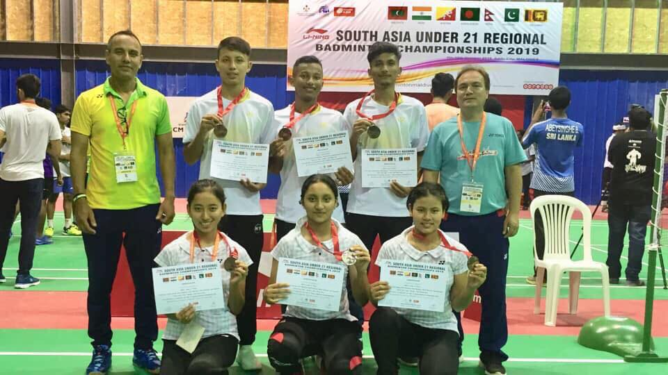 काठमाडौं (हाम्रो खेलकुद)– नेपाली जुनियर ब्याडमिन्टन टोलीले दक्षिण एसियाली यू २१ क्षेत्रिय ब्याडमिन्टन च्याम्पियनसिपमा मिक्स टिममा कास्य पदक जितेको छ । माल्दिभ्समा जारी च्याम्पियनसिपमा नेपाली टोली भारतसँग ३–२ ले पराजित हुँदै फाइनल पुग्नबाट बञ्चित भएको थियो । त्यसअघि बंगलादेश र माल्दिभ्सलाई समान ३–२ ले हराउँदै नेपाली टोली सेमिफाइनल पुगेको थियो । नेपाली टोलीमा प्रिन्स दाहाल, […]