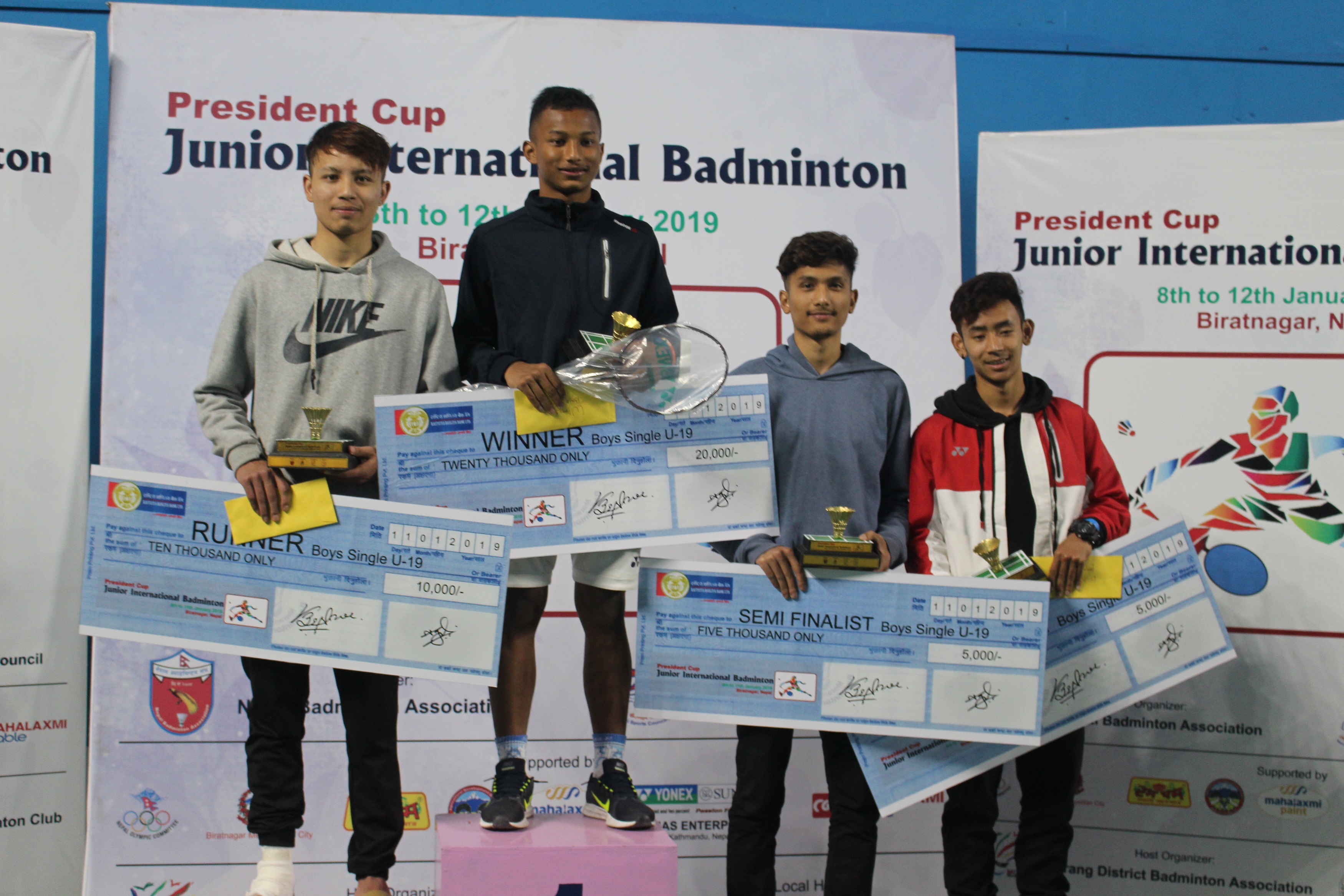 काठमाडौं (हाम्रो खेलकुद) – दुवई अन्तर्राष्ट्रिय जुनियर ब्याडमिन्टनका बिजेता प्रिन्स दाहालले राष्ट्रपति कप जुनियर अन्तराष्ट्रिय ब्याडमिनटन प्रतियोगितामा दोहोरो उपाधि जितेका छन् । प्रिन्स यु–१९ र यु–१५ दुवै तर्फ च्याम्पियन बनेका हुन् । उनले फाइलनमा यु–१९ का शीर्ष वरीयताका प्रफुल महर्जनलाई २१–८ र २१–१० ले पराजित गर्दै च्याम्पियन बने । यु–१५ मा उनले म्यानमारका ज लिन […]