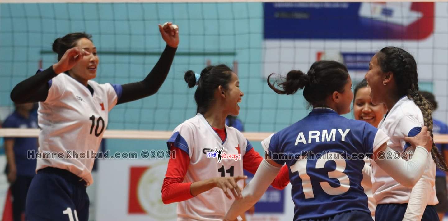 काठमाडौं (हाम्रो खेलकुद) – विभागीय टोली त्रिभुवन आर्मी क्लबले पाँचौ संस्करणको आरबीबी एनभिए कप राष्ट्रिय महिला तथा पुरुष लिग भलिबल च्याम्पियनसिपको महिलातर्फ न्यु डायमण्डलाई ३-२ को सेटमा पराजित गर्दै विजयी सुरुवात गरेको छ । त्रिपुरेश्वरस्थित राष्ट्रिय खेलकुद परिषदको कभर्डहलमा शुक्रबार भएको प्रतिस्पर्धात्मक खेलमा आर्मीले पहिलो, तेस्रो र पाँचौं सेटमा जितका साथ विजयी सुरुवात गरेको हो […]