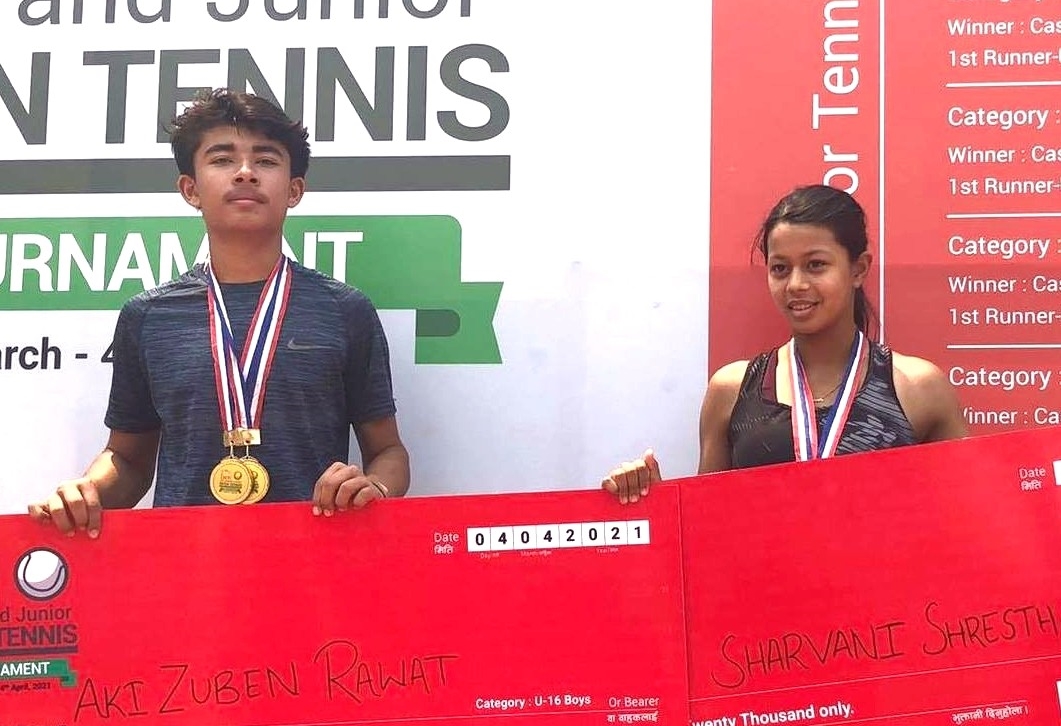 काठमाडौं (हाम्रो खेलकुद) – अकी जुवेन रावतले दोश्रो टिम टेनिस नेपाल जेटीआई जुनियर ओपन टेनिस प्रतियोगिताको यु–१६ ब्वाइज सिंगल्समा शनिबार स्वर्ण जितेका छन् । धापाखेलस्थित आयोजक टिम टेनिस नेपालको कोर्टमा भएको फाइनलमा अकीले आर्यन गिरीलाई ६–३ र ६–२ को सोझो सेटमा परजित गरे ।सोही स्पर्धाको गल्र्सको उपाधि भिडन्तमा सर्वानी श्रेष्ठले सुनिरा थापालाई ६–४ र ७–५ […]