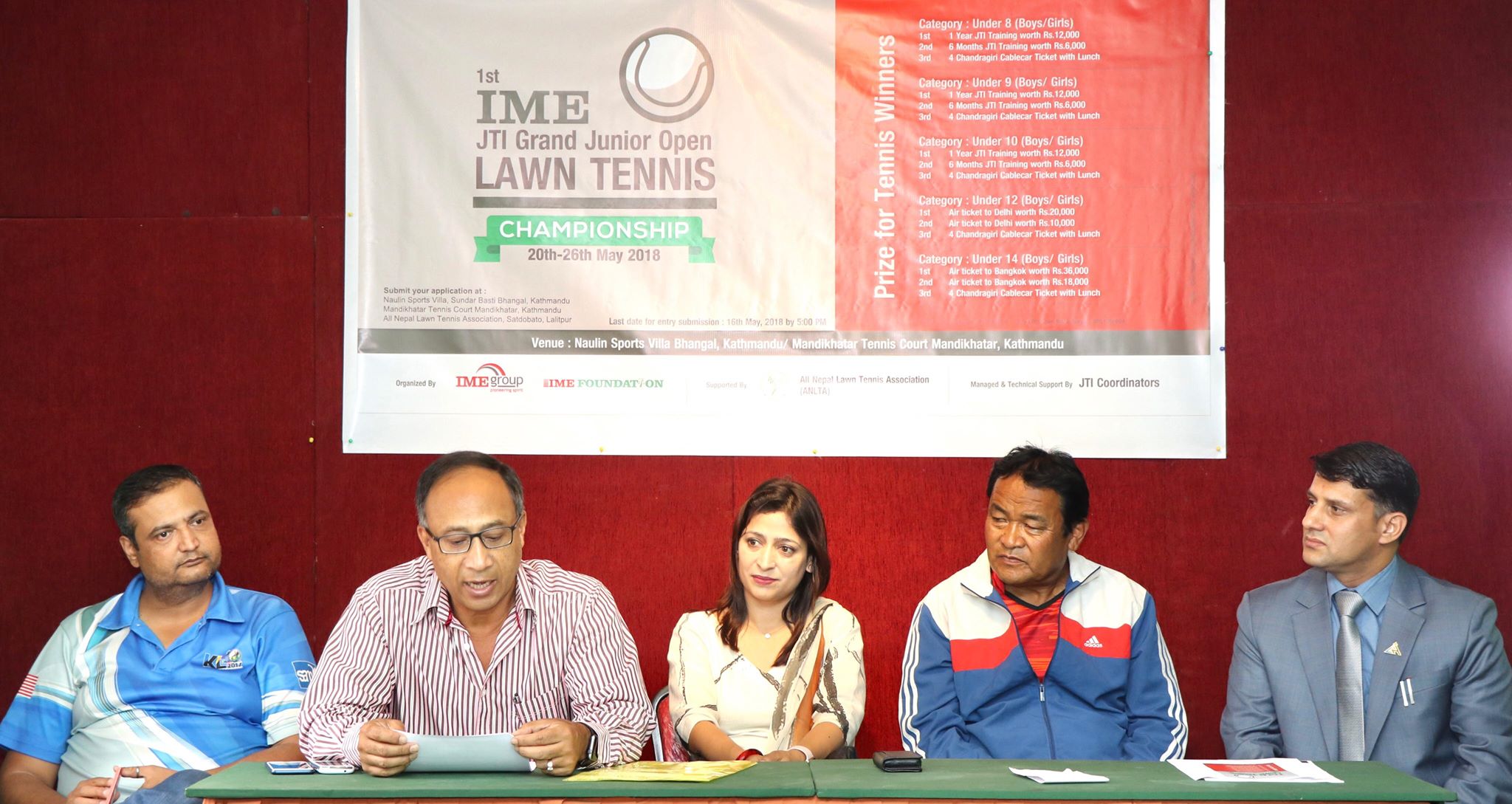 काठमाडौं (हाम्रो खेलकुद) – आइएमईं जेटिआई ग्रान्ड जुनियर ओपन लन टेनिस प्रतियोगिता जेठ पहिलो साता आयोजना हुने भएको छ । आइएमईं फाउन्डेसनको आयोजना तथा नेपाल लन टेनिस एसोसिएसनको सहयोग र जुनियर टेनिस इनिसिएसन (जेटिआईं) को संयोजनमा जुनियर टेनिस प्रतियोगिता जेठ ६ गतेबाट १२ गते सम्म हुने शुक्रबार आयोजित पत्रकार सम्मेलनमा जानकारी दिइयो । प्रतियोगिता काठमाडौंस्थित […]