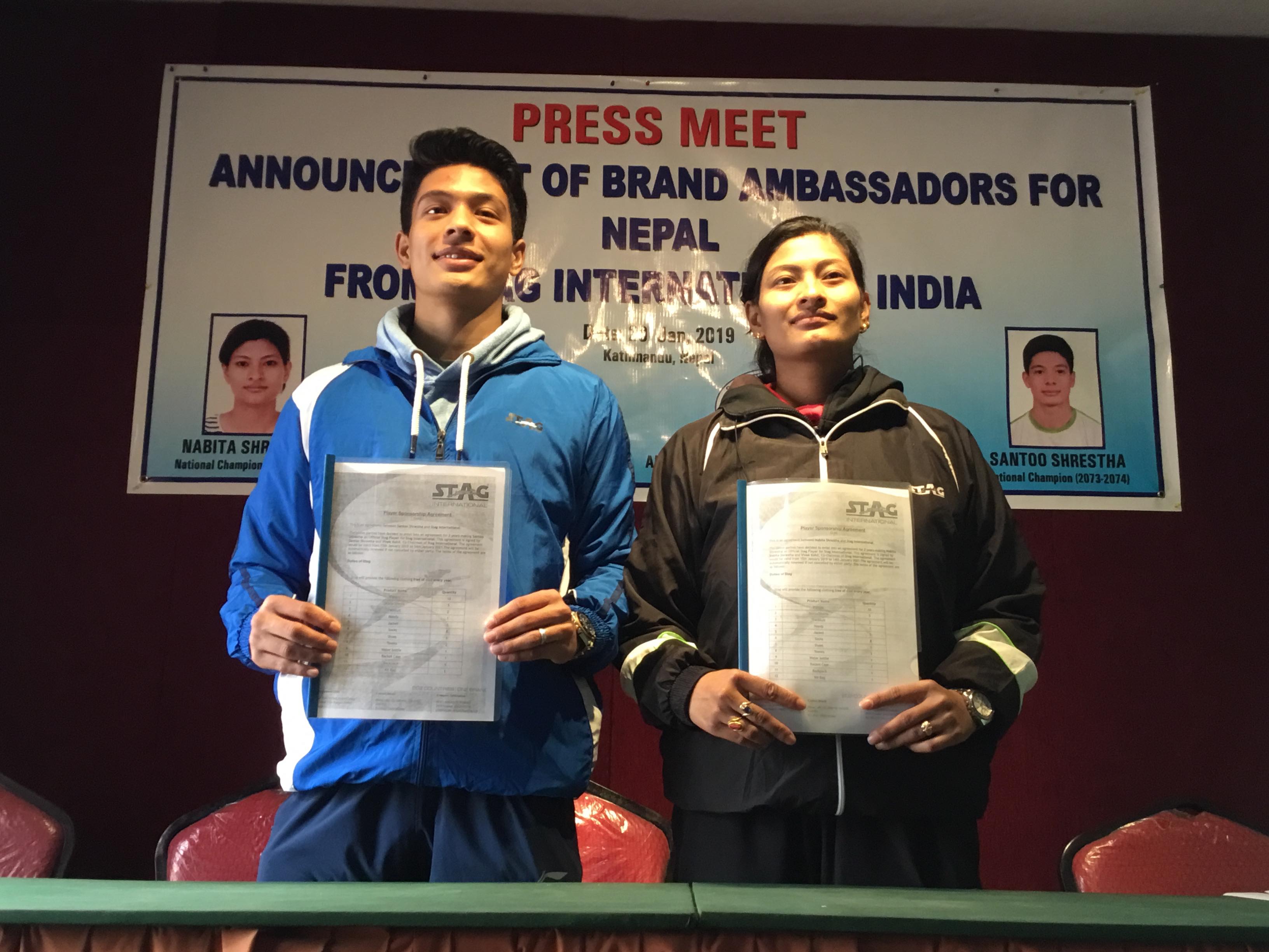काठमाडौं (हाम्रो खेलकुद) – नेपाल नम्वर वान नविता श्रेष्ठ र स्यान्टु श्रेष्ठ टेवल टेनिस खेलको सामग्री उत्पादन गर्ने भारतको चर्चित कम्पनी स्ट्याग इन्टरनेसनलको ब्रान्ड एम्वासडर बनेको छ । स्ट्यागले नेपालमा पहिलोपटक दुई खेलाडीलाई २ वर्षको लागि ब्रान्ड एम्वासडरमा नियुक्त गरेको हो । दुई वर्षे सम्झौतापत्रमा दुवै खेलाडीले हस्ताक्षर गरिसकेको नेपाल टेबल टेनिस संघले मंगलबार पत्रककार […]