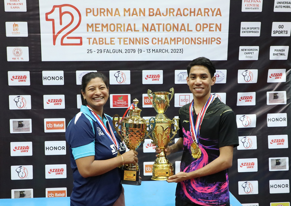 काठमाडौं (हाम्रो खेलकुद) – नेपाल प्रहरीकाद्वय संयोग कपाली र नविता श्रेष्ठ १२औं पूर्णमान बज्राचार्य स्मृति राष्ट्रिय खुला टेबल टेनिस प्रतियोगितामा च्याम्पियन बनेका छन् । खुल्लातर्फ सिंगल्सको पुरुषमा संयोग र महिलामा नविता पहिलो भएका हुन् । लैनचौरस्थित राष्ट्रिय टेबल टेनिस प्रशिक्षण केन्द्रमा सोमबार भएको पुरुषतर्फको फाइनलमा संयोगले आफ्नै क्लबका विनेश खनियाँलाई ११–९, ७–११, १५–१३, १३–११ र […]