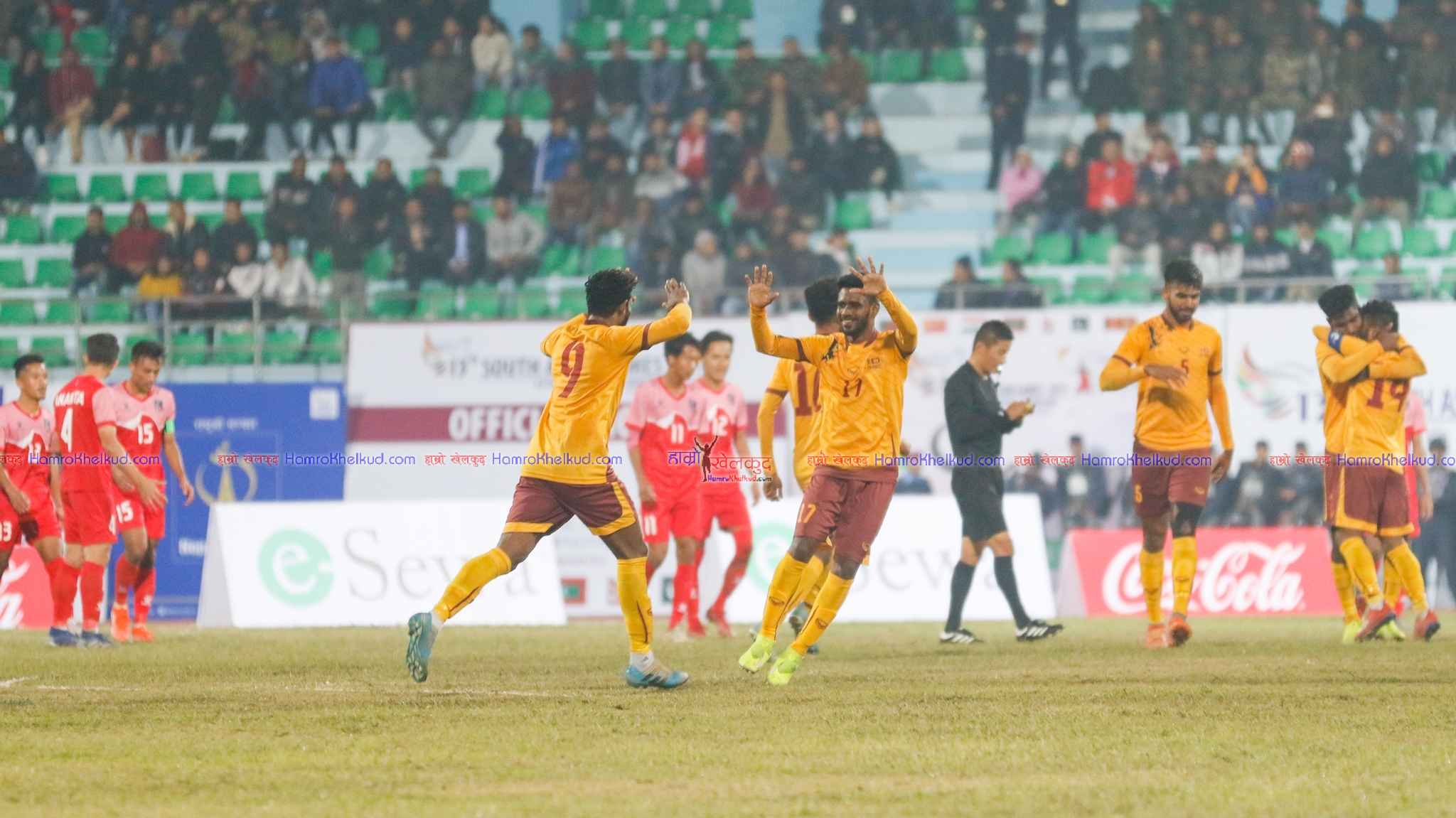 काठमाडौं (हाम्रो खेलकुद) – १३औं दक्षिण एसियाली खेलकुद (साग) को पुरुष फुटबलतर्फ लिग चरणमा नेपाल र श्रीलंकाबिचको खेल बराबरीमा सकिएको छ । दशरथ रंगशालामा बुधबार भएको आफ्नो दोस्रो खेलमा श्रीलंकाले इन्ज्युरी समयमा गोल गरेपछि नेपाल १–१ को बराबरीमा रोकिएको हो । नेपालले खेलको पहिलो हाफमा कप्तान सुजल श्रेष्ठको गोलमा अग्रता लिएको थियो । तर दोस्रो […]
