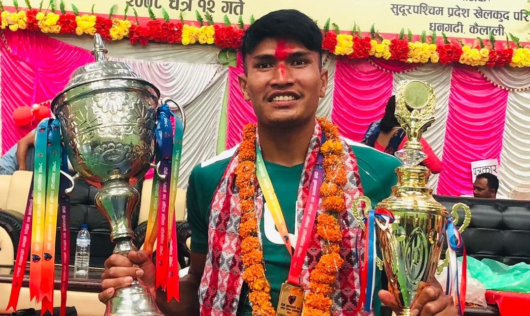 धनगढी (हाम्रो खेलकुद) – सुदूरपश्चिम प्रदेश खेलकुद परिषदले सुदूरपश्चिमका पुरुष राष्ट्रिय भलिबल टोलीका खेलाडीलाई सम्माजित गरेका छन् । कैलालीको धनगढीमा भएको शनिबार सम्पन्न भएको मुख्यमन्त्री कप राष्ट्रिय पुरुष भलिबल प्रतियोगिताको समापन दौरान सुदूरपश्चिमका पुर्व तथा वर्तमान ८ राष्ट्रिय खेलाडीलाई सम्मानपत्रले सम्मानित गरिएको हो । सम्मानित हुने खेलाडीमा नेपाली टोलीको १५ वर्षसम्म कप्तानी गरेका अछामका भरत […]