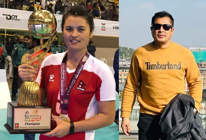 काठमाडौं (हाम्रो खेलकुद) – नेपाली राष्ट्रिय महिला भलिबल टोलीकी कप्तान अरुणा शाही र अभिनेता धिरेन शाक्यलाई यसै महिना पाल्पाको रानीमहलमा आयोजना हुने ‘सञ्जय मेमोरियल राष्ट्रिय महिला बिच भलिबल’ प्रतियोगिताको सद्भावना दुतमा नियुक्त गरिएको छ । बिच भलिबल पाल्पाको तानसेनस्थित रानीमहलमा चैत २४, २५ र २६ गते आयोजना हुदैछ । फाउन्डेसनको कार्यसमिति बैठकले प्रतियोगितालाई सफल बनाउन […]