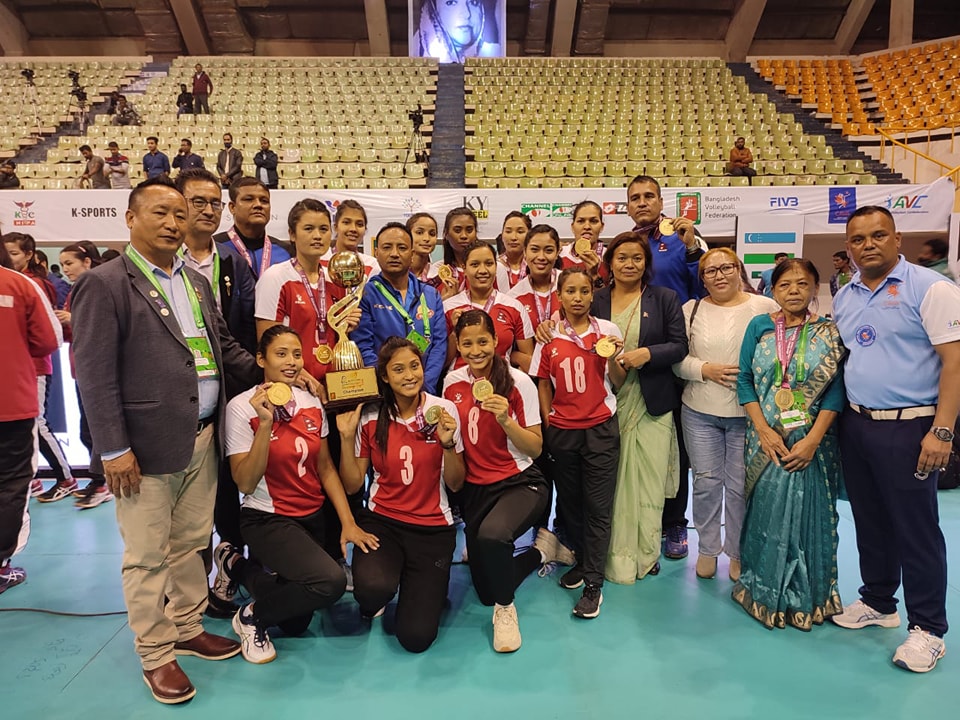 काठमाडौं (हाम्रो खेलकुद) – साविक विजेता नेपाल एभिसी एसियन सेन्ट्रल जोन भलिबल च्याम्पियनसिप अन्तर्गत महिलातर्फको च्याम्पियन बनेको छ । नेपालले उज्वेकिस्तानलाई पराजित गर्दै लगातार दोस्रो संस्करणमा अपराजित रहँदै च्याम्पियन बनेको हो । बंगलादेशको ढाका मिरपुरस्थित शाहिद शुरवार्दी इन्डोर स्टेडियममा मंगलबार भएको उपाधि भिडन्तमा नेपालले उज्वेकिस्तानलाई ३–२ को सेटमा पराजित गरेको हो । नेपालले उज्वेकिस्तानमाथि २६–२४, […]