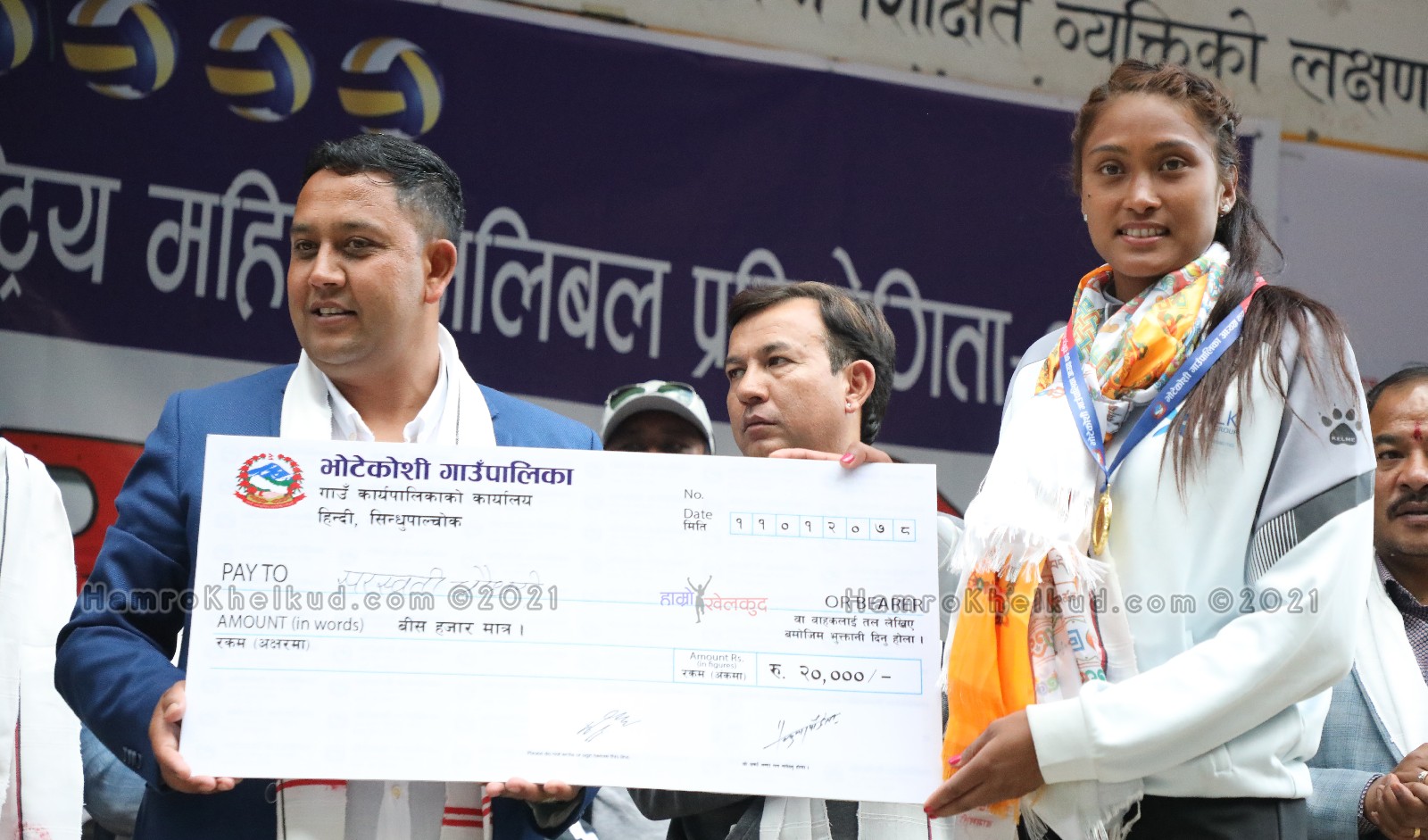 तातोपानी (हाम्रो खेलकुद) – विभागीय नेपाल एपिएफ क्लबकी स्पाइकर सरस्वती चौधरी भोटेकोशी गाउँपालिका अध्यक्ष कप राष्ट्रिय महिला भलिबल प्रतियोगिताको सर्वाेत्कृष्ट खेलाडी चुनिएकी छिन् । एपिएफलाई प्रतियोगिताको च्याम्पियन बनाउन सरस्वतीले उत्कृष्ट प्रदर्शन गरेकी थिइन् । उनले २० हजार रुपैयाँ हात पारिन् । व्यक्तिगत विधातर्फ आर्मीकी शान्ति थारु उत्कृष्ट स्पाइकर चुनिइन् । आर्मीकै सुनिता खड्का उत्कृष्ट ब्लकर चुनिदा न्यु […]