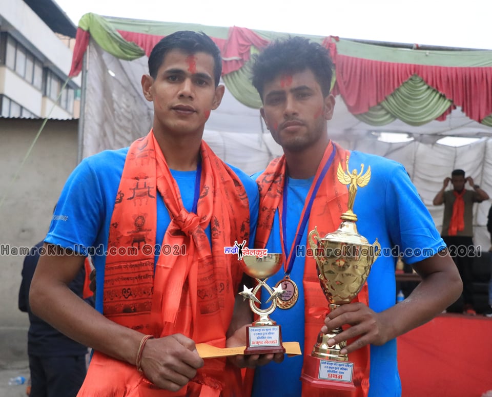 काठमाडौं (हाम्रो खेलकुद) – हिम रश्मी हाई स्कुलका दिल बहादुर सुनार र राजेन्द्र विष्टको जोडीले बाग्लुङ कप खुल्ला राष्ट्रिय पुरुष २ ‘ए’ साइड भलिबल प्रतियोगिताको उपाधि जितेको छ । ह्याप्पी योङ युथ क्लब बाग्लुङको आयोजनामा काठमाडौं नयाँ बसपार्कस्थित ढोरपाटन स्पोर्ट्स क्लबको खेल मैदानमा आइतबार भएको फाइनलमा दिल र राजेन्द्रको जोडीले छन्त्याल समाजका विकास छन्त्याल र […]