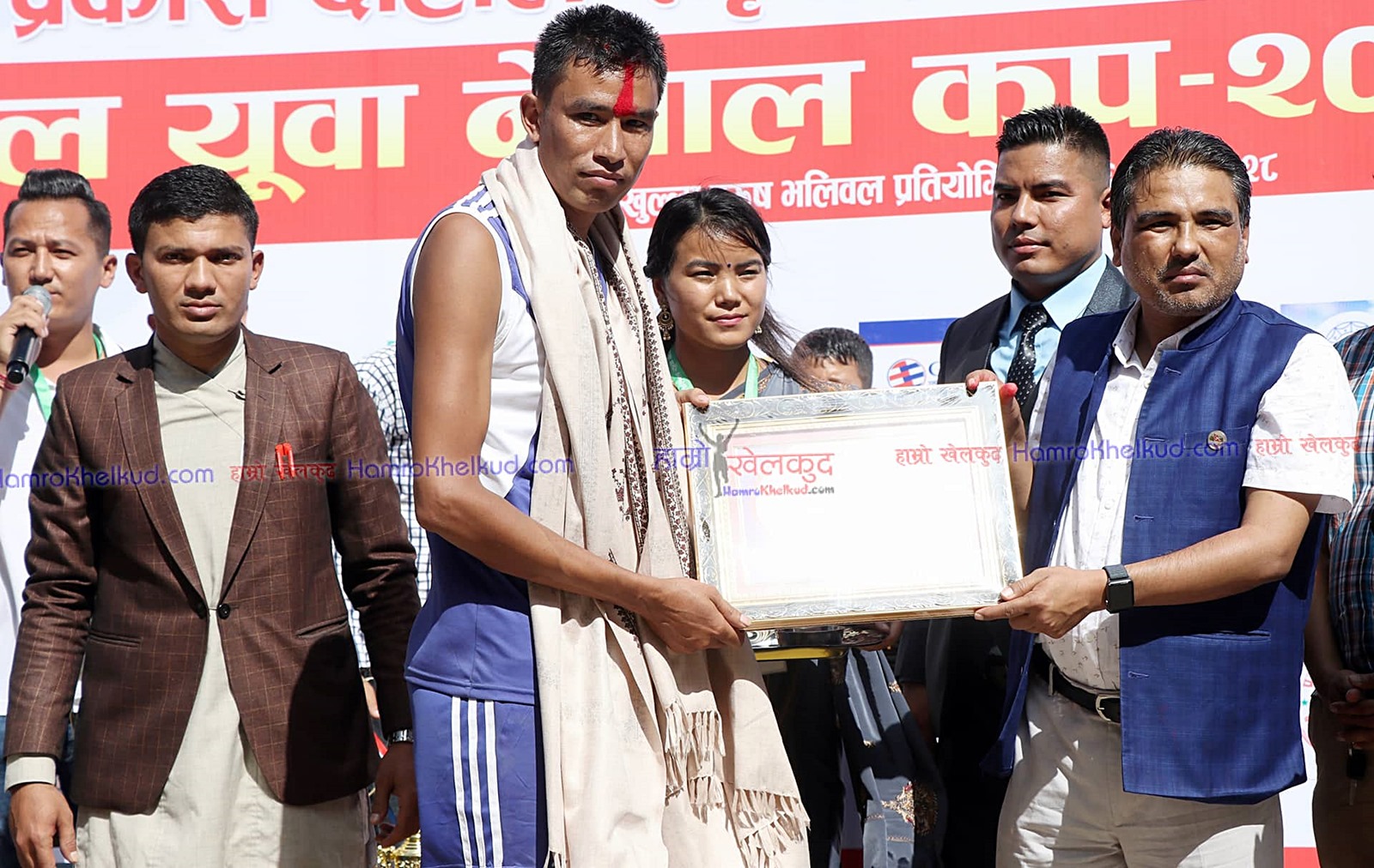 काठमाडौं (हाम्रो खेलकुद) – नेपाली पुरुष राष्ट्रिय भलिबल टोलीका कप्तान इमबहादुर रानामगर सम्मानित भएका छन् । समाजमा युवामाझ प्रभावशाली भूमिका निर्वाह गरेकोमा उनलाई प्रगतिशील युवा नेपाल गोरखा काठमाडौंले शनिबार सम्मान गरेको हो । इमलाई सर्वाधिक धनराशिको प्रथम प्रकाश दाहाल स्मृति प्रगतिशिल युवा नेपाल कप राष्ट्रिय भलिबल प्रतियोगिताको फाइनल दौरान आयोजकले दोसल्ला र सम्मान पत्रले सम्मानित […]