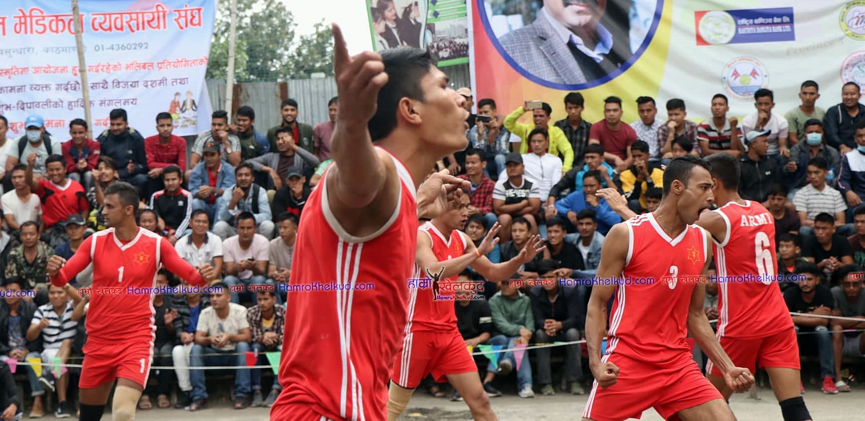 काठमाडौं (हाम्रो खेलकुद) – त्रिभुवन आर्मी क्लब र नेपाल पुलिस क्लब प्रथम प्रकाश दाहाल स्मृति प्रगतिशिल युवा नेपाल कप भलिबल प्रतियोगिताको सेमिफाइनलमा पुगेका छन् । गोगंबु बसपार्कमा जारी प्रतियोगितामा बिहीबार आर्मीले जाउलाखेल भलिबल क्लबलाई ३–० को सोझो सेटमा हरायो । आर्मीले २५–२३,२५–११ र २५–२१ ले जावलाखेललाई पराजित गरेको थियो । समूह एबाट आर्मी सेमिफाइनलमा पुगेका […]