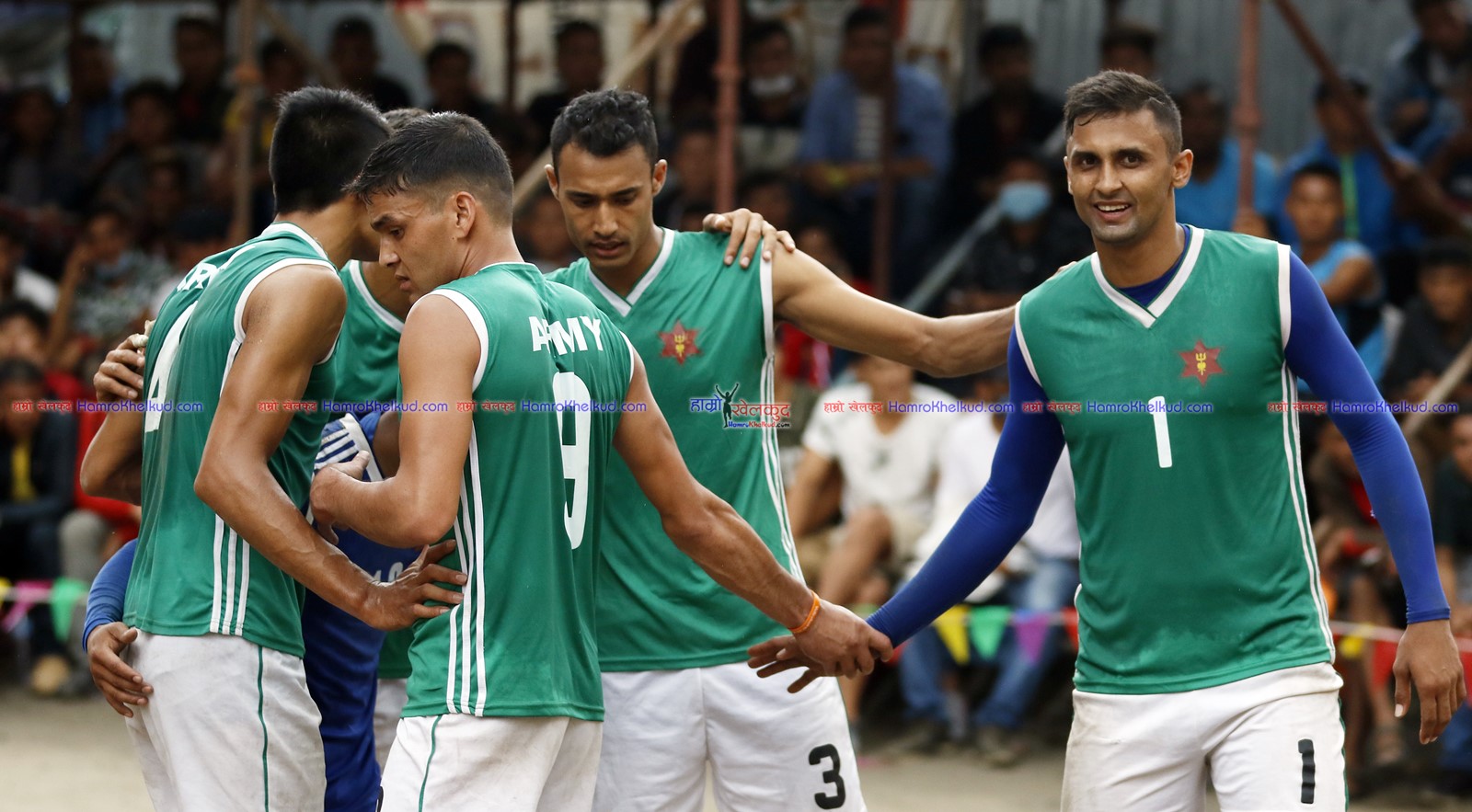 काठमाडौं (हाम्रो खेलकुद)– प्रथम प्रकाश दाहाल प्रगतिशिल युवा नेपाल कप राष्ट्रिय भलिबल प्रतियोगिताको उपाधिका लागि त्रिभुवन आर्मी क्लबको प्रतिद्वन्द्विको टुंगो आइतबार मात्र लाग्ने भएको छ । आर्मी आजै भएको पहिलो सेमिफाइनलमा गण्डकी प्रदेशलाई पराजित गर्दै उपाधि नजिक पुगेको हो । गंगाबुस्थित नयाँ बसपार्कमा नेपाल पुलिस क्लब र नेपाल एपिएफ क्लबबीचको दोस्रो सेमिफाइनल खराब प्रकाशका कारण […]