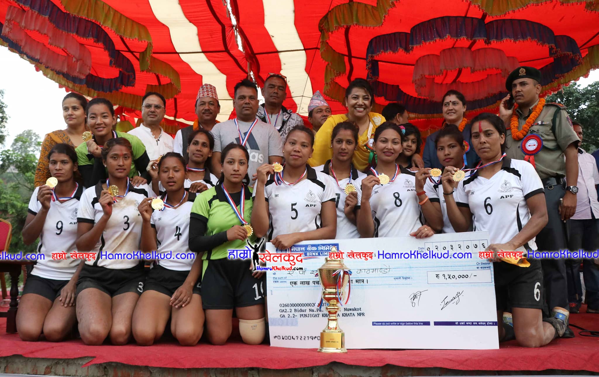 नुवाकाेट (हाम्राे खेलकुद) – विभागीय नेपाल एपीएफ क्लबले प्रथम उपमेयर राष्ट्रिय महिला भलिबल प्रतियाेगिताकाे उपाधि जितेकाे छ । विदुर नगरपालिका वडा नम्वर १ काे काेलनीकाे भलिबल काेर्टमा भएकाे फाइनलमा एपीएफले हाेङ्ग्वान्जी न्यु डायमन्ड एकेडेमीलाई ३-० काे साेझाे सेटमा पराजित गर्दै उपाधि जितेकाे हाे । एक पक्षीय खेलमा एपीएफले २५-२१, २५-२० र २५-१२ काे सहज जित […]