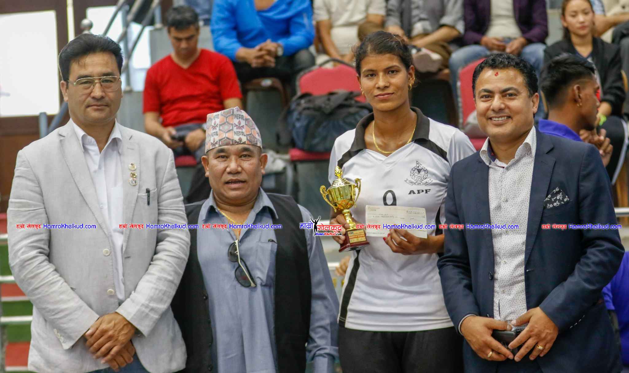 नेपालगन्ज (हाम्रो खेलकुद) – आठौं अन्तरगत भलिबलमा नेपाल एपीएफ क्लब र नेपाल पुलिस क्लबले स्वर्ण जितेका छन् । एपीएफले महिलातर्फ र पुलिसले पुरुषतर्फ स्वर्ण जित्न सफल भएको हो । महिलामा पुलिस र पुरुषमा एपीएफले कास्य जित्न सफल भयो । बाँकेको खजुरास्थित शुक्र भलिबल कोर्टमा बुधबार भएको महिलातर्फको फाइनलमा एपीएफले प्रदेश ३ माथि ३–० को सोझो […]